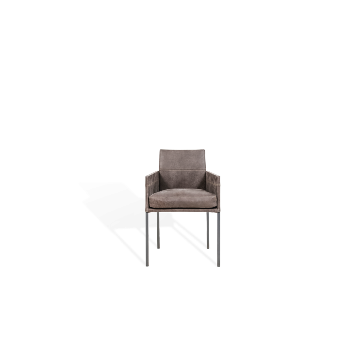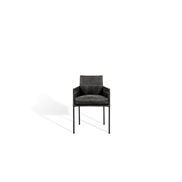 Die geradlinige Form und der Einklang aus Eleganz, Modernität und Zeitlosigkeit beschreiben das Design dieses unverwechselbaren Stuhls. Die leicht geneigte Rückenlehne und eine mit Schaum bespannte Sitzfläche werden mit einer Husse aus hochwertigem Bezugsstoff oder robusten Leder überzogen. Das opulente Flockenkissen sorgt für zusätzlichen Komfort. So anmutig und gemütlich wie ein schlanker Sessel ist die TEXAS Komposition mit eleganter Armlehne. Der TEXAS, ein persönlicher Begleiter für den Esstisch daheim oder als klassisches Sitzmöbel in der exklusiven Gastronomie.