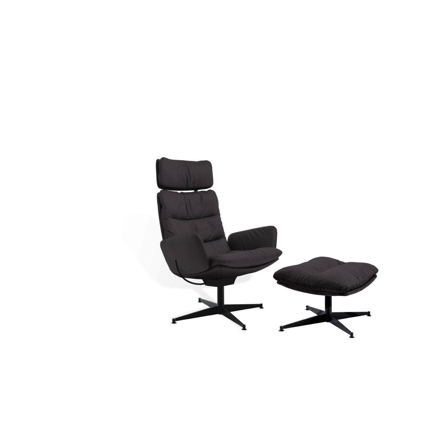 Die gleichnamige Ottomane des Loungesessels hat eine klare Botschaft. Füße hochlegen und entspannen. Sie ist die Extraportion Gemütlichkeit in harmonischem Design. Das identische Bezugsmaterial und das gleiche Untergestell lassen Loungesessel und Ottomane zu einer Einheit verschmelzen.