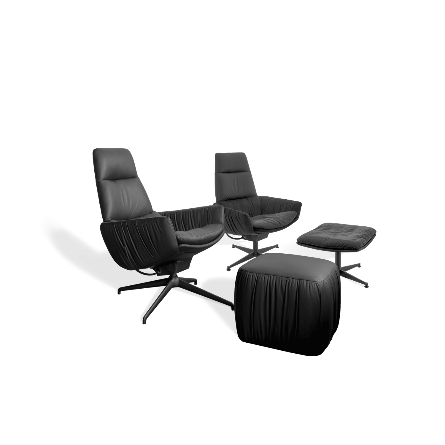 Der FAYE CASUAL LOUNGE Sessel sieht sich besonders gerne in Begleitung. Passend zur in Falten gelegten Polsterung des Sessels präsnetiert sich FAYE CASUAL Pouf. Aber auch die Kombination mit einer Ottomane auf passendem Gestell ist ebenso komfortabel wie stilvoll.