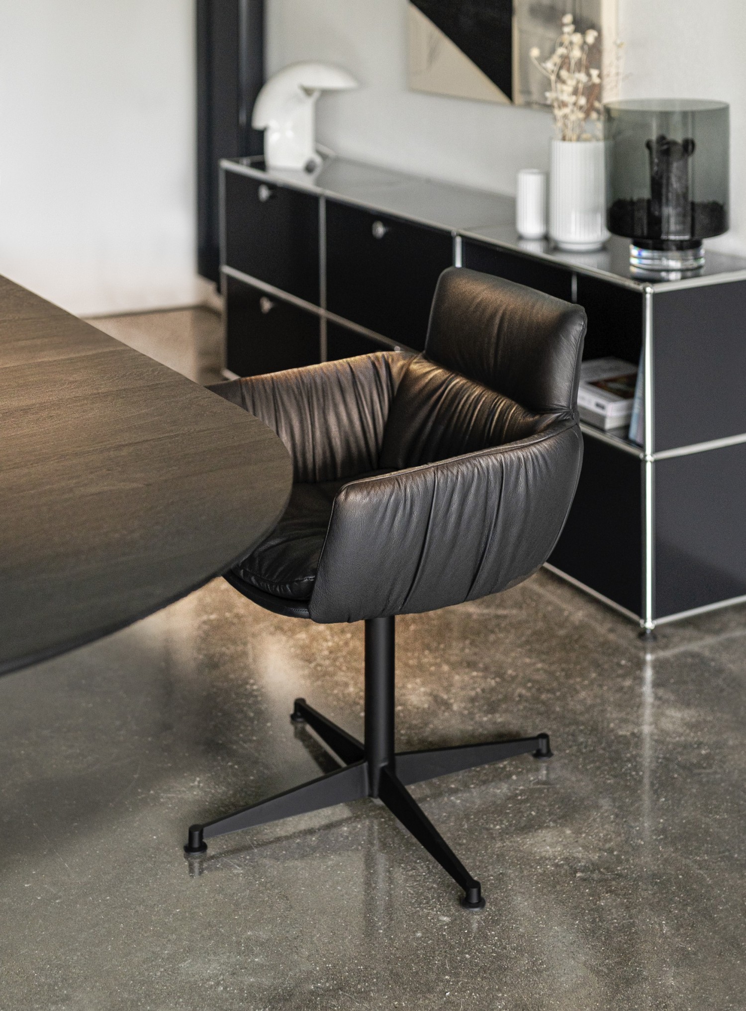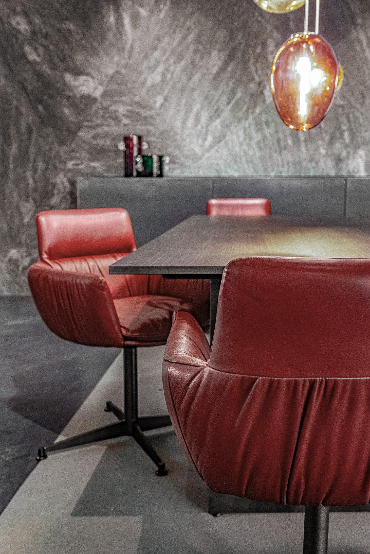 Für die elegante FAYE CASUAL Produktfamilie lässt das KFF Design Team gerade Linien, feine Rundungen und ausdrucksstarke Falten zu einer Symbiose verschmelzen. Wie ein Vorhang umschließen die Falten das Möbel. Die fest ummantelte Rückenlehne zeigt sich in elegantem Kontrast. Durch die fein ausgearbeitete Polsterung bietet FAYE CASUAL besten Komfort für den Rücken, Arm- und Schulterbereich. Maßgeschneiderte Stühle, zierliche Sessel, Theken- und Barstühle bieten Komfort und Design für die privaten Räume oder das elegante Objekt.