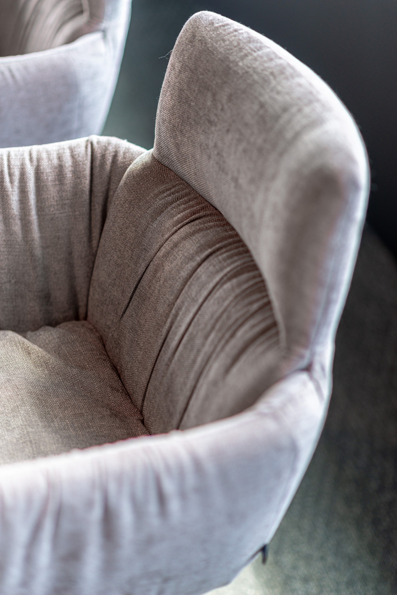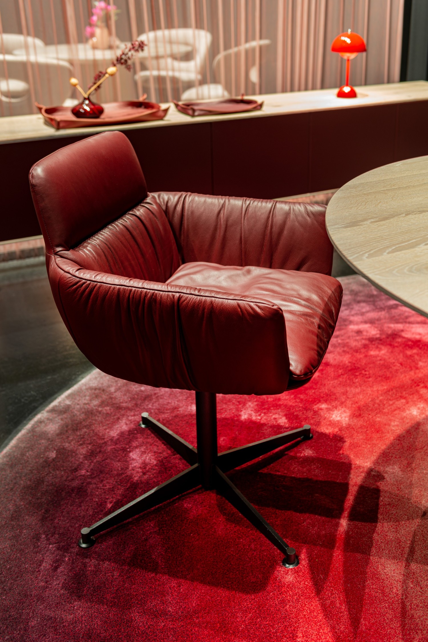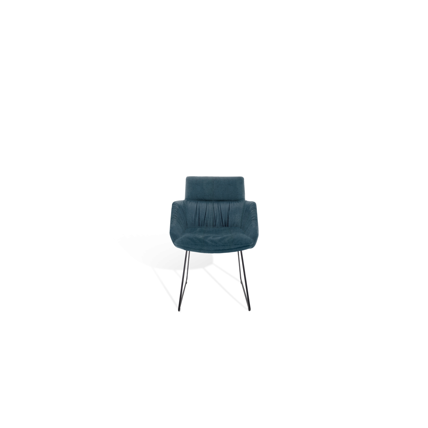 Für den FAYE CASUAL Polsterstuhl lässt das KFF Design Team gerade Linien, feine Rundungen und ausdrucksstarke Falten zu einer femininen Symbiose verschmelzen. Wie ein Vorhang umschließen die Falten den Stuhl. Die obere fest ummantelte Rückenlehne zeigt sich in elegantem Kontrast. Durch die fein ausgearbeitete Polsterung bietet der leichte Stuhl besten Komfort für den Rücken, Arm- und Schulterbereich. Ein maßgeschneiderter Stuhl für die privaten Räume oder das elegante Objekt.