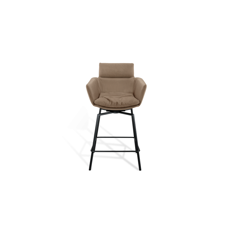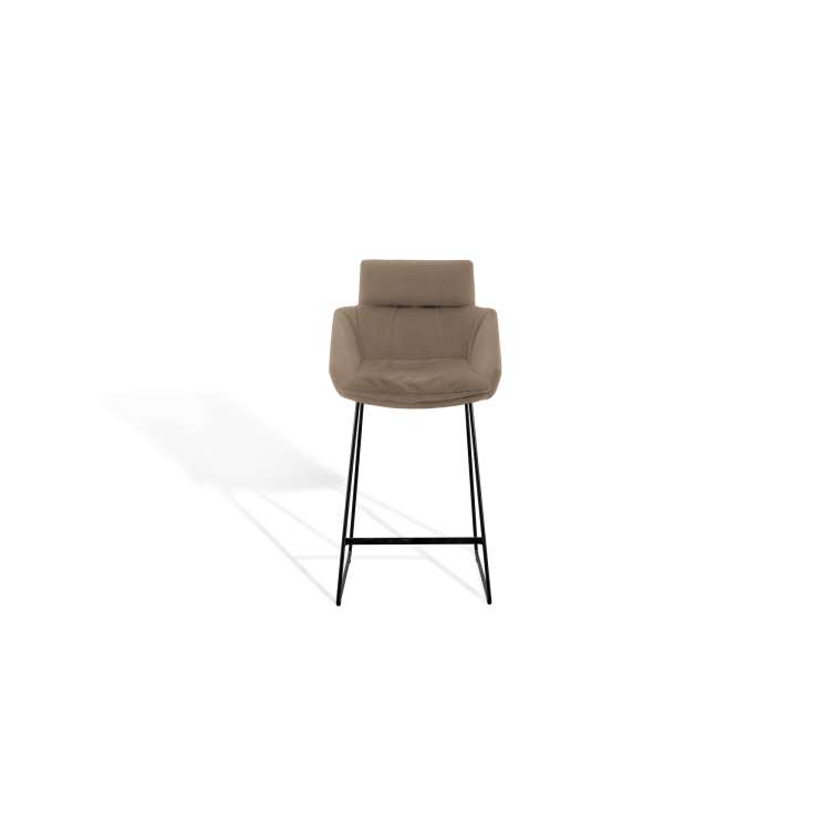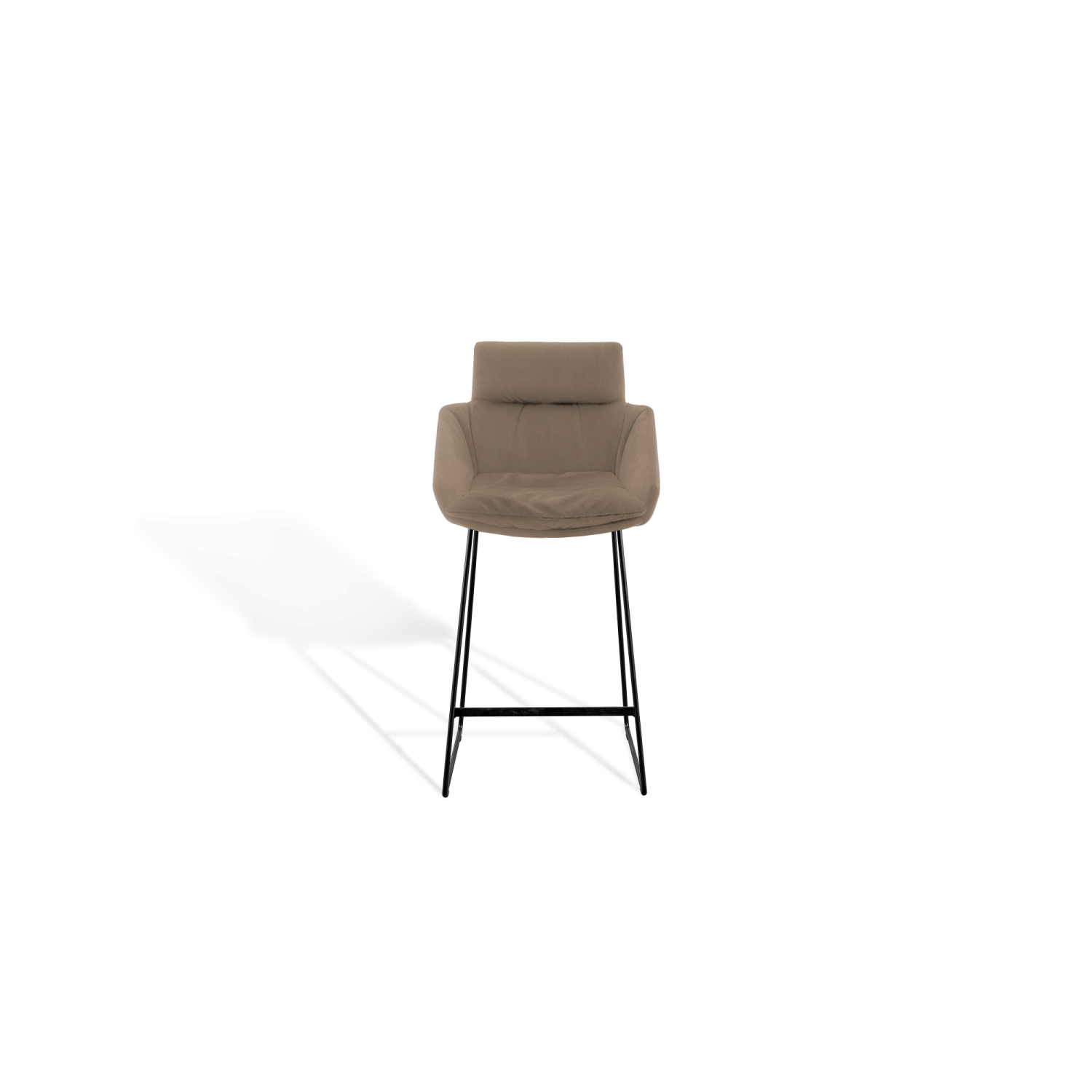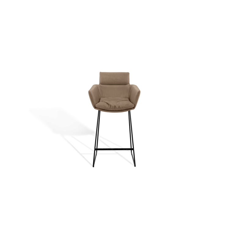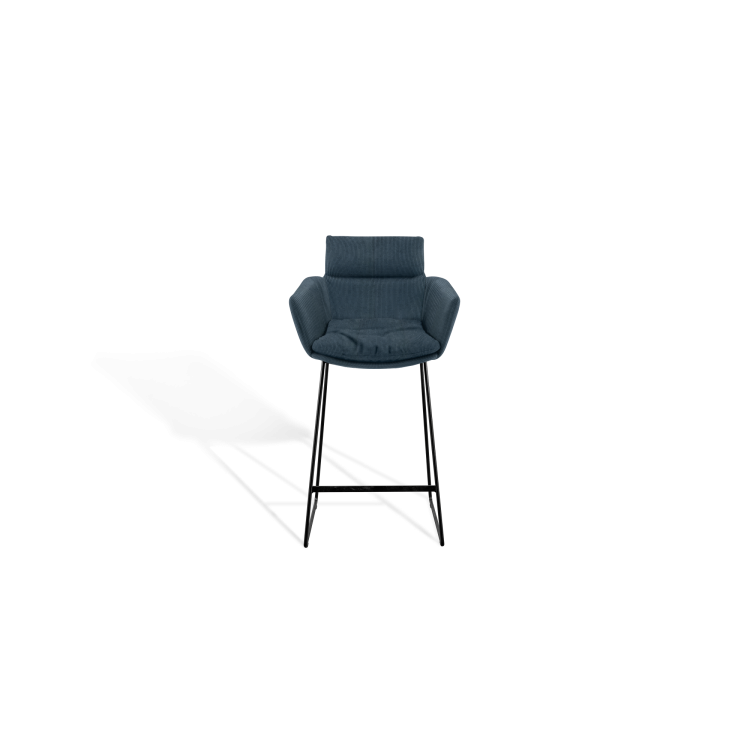 Für den FAYE Thekenstuhl lässt das KFF Design Team gerade Linien, feine Rundungen und das Spiel mit Nähten und leichten Falten zu einer Symbiose verschmelzen. Die obere, fest ummantelte Rückenlehne hebt sich bewusst sichtbar von der Stuhlschale ab. Durch die fein ausgearbeitete Polsterung bietet der leichte FAYE besten Komfort für den Rücken, Arm- und Schulterbereich. Ein maßgeschneiderter Thekenstuhl für den privaten Küchenbereich oder das elegante Objekt.