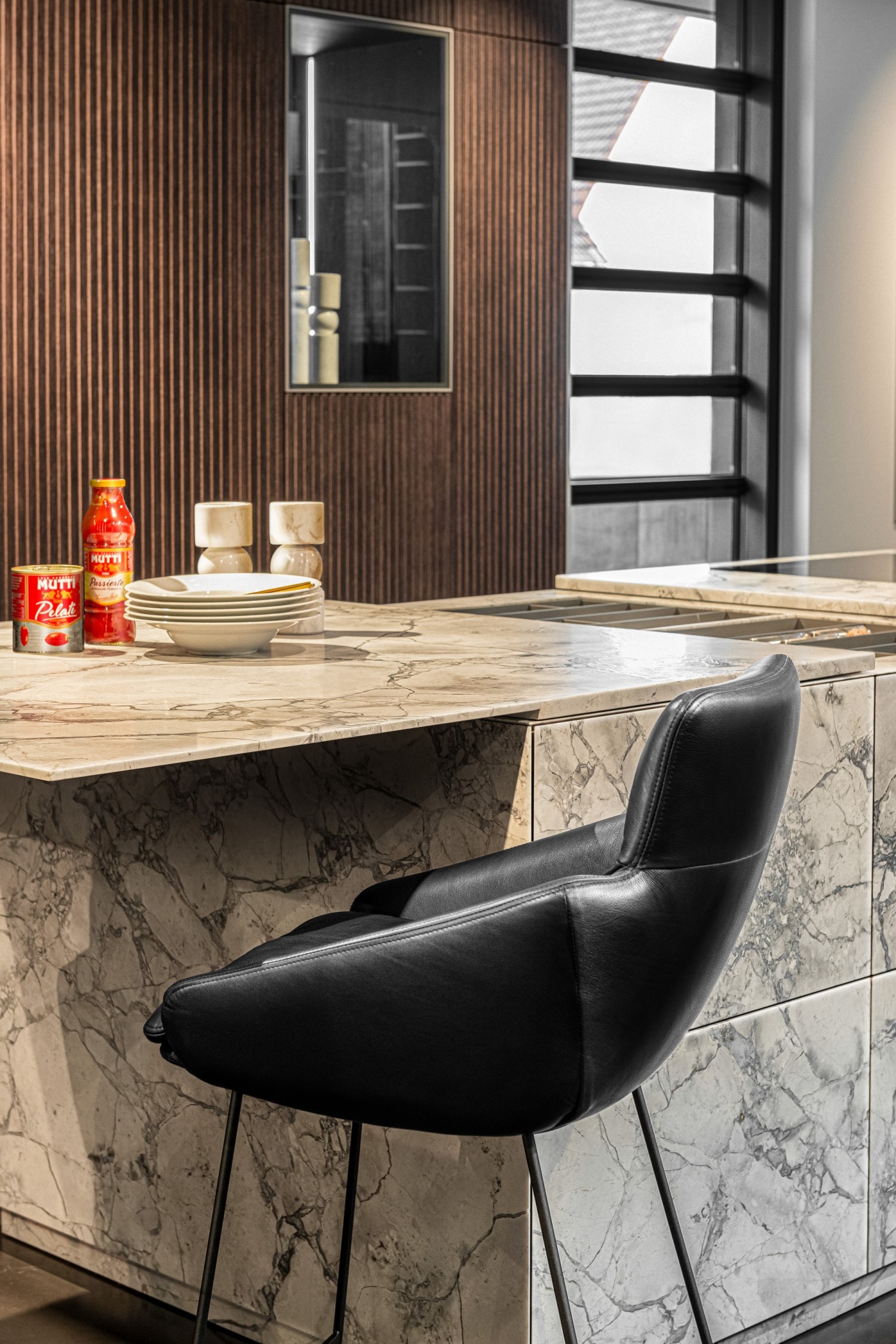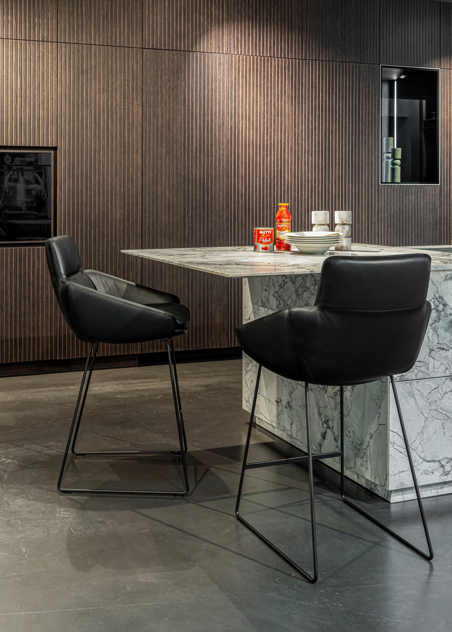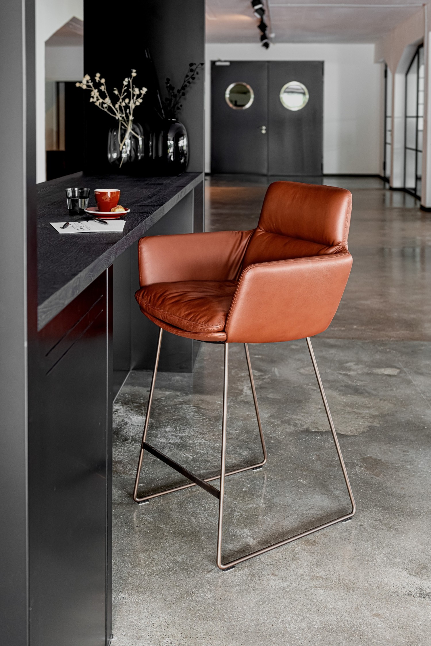 Für den FAYE Thekenstuhl lässt das KFF Design Team gerade Linien, feine Rundungen und das Spiel mit Nähten und leichten Falten zu einer Symbiose verschmelzen. Die obere, fest ummantelte Rückenlehne hebt sich bewusst sichtbar von der Stuhlschale ab. Durch die fein ausgearbeitete Polsterung bietet der leichte FAYE besten Komfort für den Rücken, Arm- und Schulterbereich. Ein maßgeschneiderter Thekenstuhl für den privaten Küchenbereich oder das elegante Objekt.