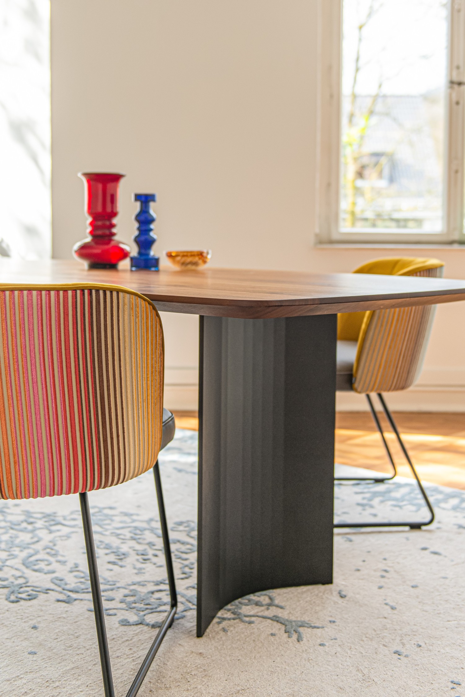 Das Design des ersten GAIA Stuhl Modells hat die italienische Designerin Monica Armani gekonnt in die LINE Edition übertragen. Unverkennbarer Sitzkomfort durch die raffinierte Polsterung der großzügigen Sitzfläche und der geschlossenen halbrunden Rückenlehne mit elegantem Keder. Sitzfläche und Keder sind farblich identisch und zeigen ein kontrastreiches oder harmonisches Spiel. Der GAIA LINE Stuhl – ein exquisites Möbel für Zuhause oder das ausdrucksstarke Objekt.