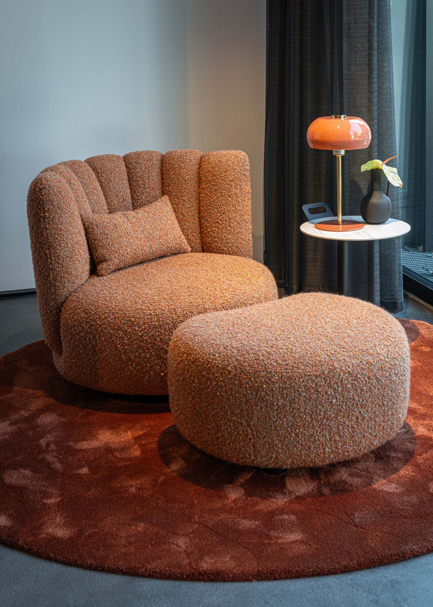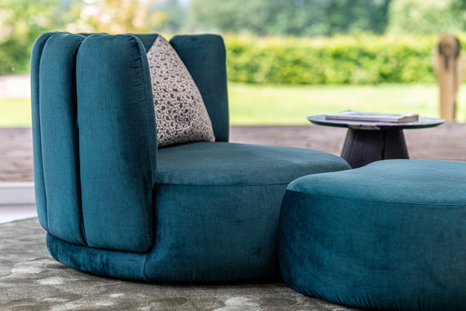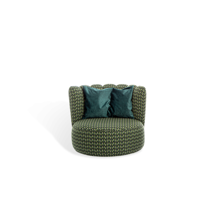 Die beliebte GAIA-Familie der italienischen Designerin Monica Armani hat ein neues außergewöhnliches Mitglied. GAIA DIVANO. Dieses Möbel entzieht sich jeder Kategorisierung. Kein Sessel, kein Sofa, kein Stuhl – eine Insel würde es treffen. Die dazugehörige Ottomane ist die perfekte Erweiterung der runden Sitzfläche. Das Polster schmiegt sich an wie ein Puzzleteil. Cool und kuschelig, weich und rund, extravagant und lässig. GAIA DIVANO bietet durch den weichen Einsitz gemütlichen Sitzkomfort. Die 7 Rückenelemente sind soft gepolstert und geben angenehm und leicht nach. Mit diesem Entwurf hat Monica Armani ihre bekannte Assoziation zum „Hineinfallen lassen in eine Blüte“ perfekt umgesetzt. Diese sich drehende Oase der Gemütlichkeit und Entspannung setzt ein Statement im coolen Loft, im großzügigen Wohnraum, in der einladenden Hotellobby oder im Wellnessbereich.