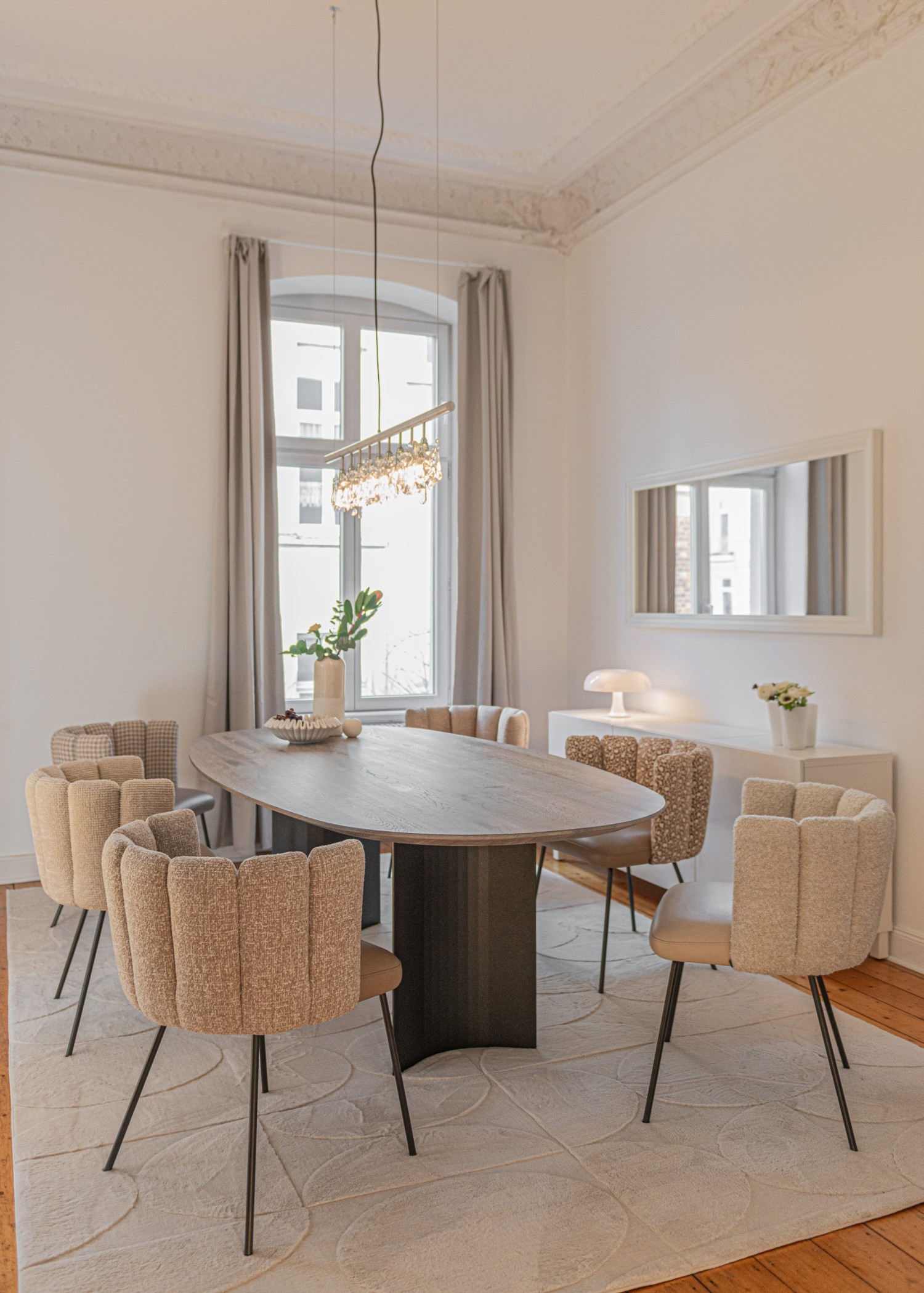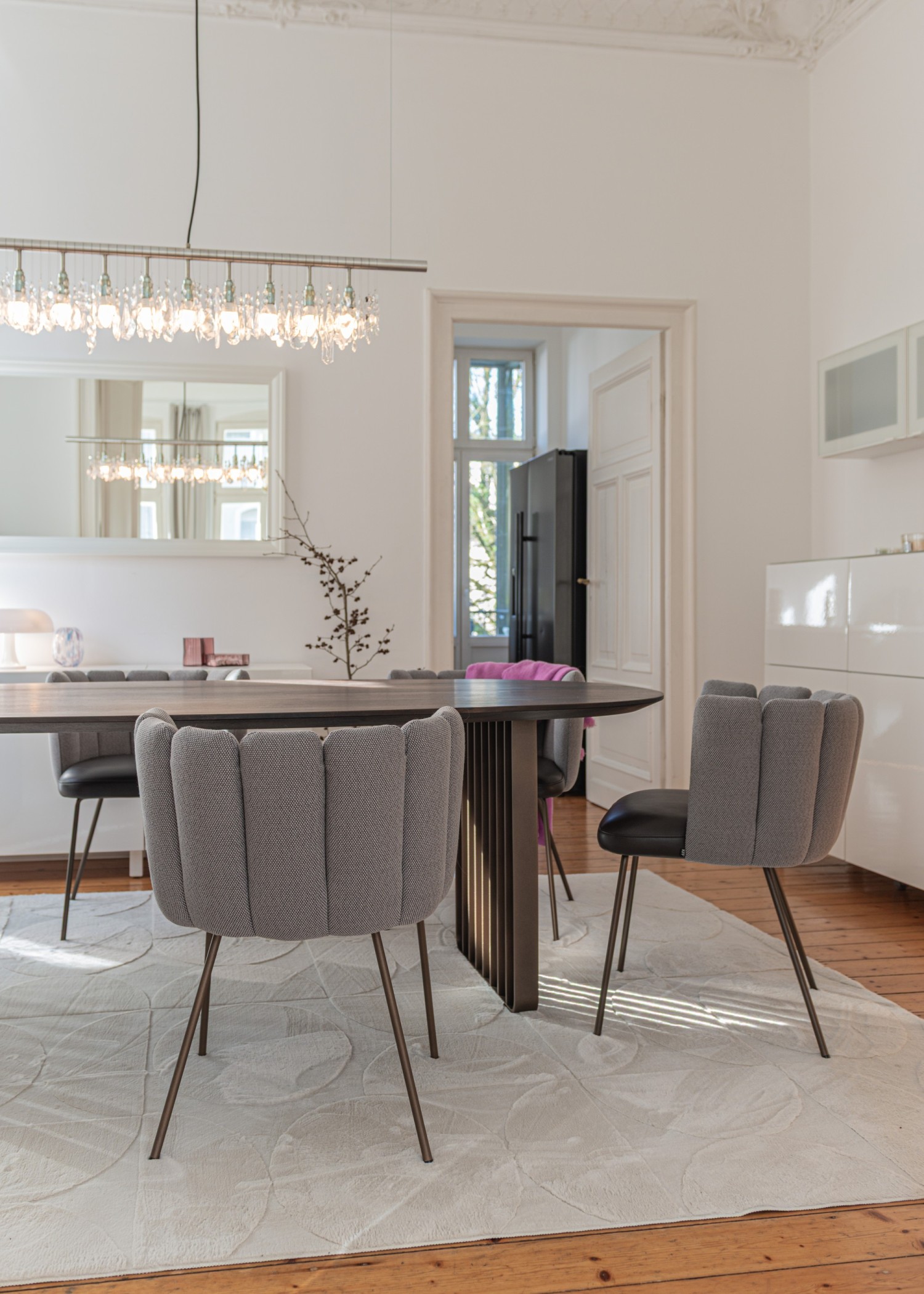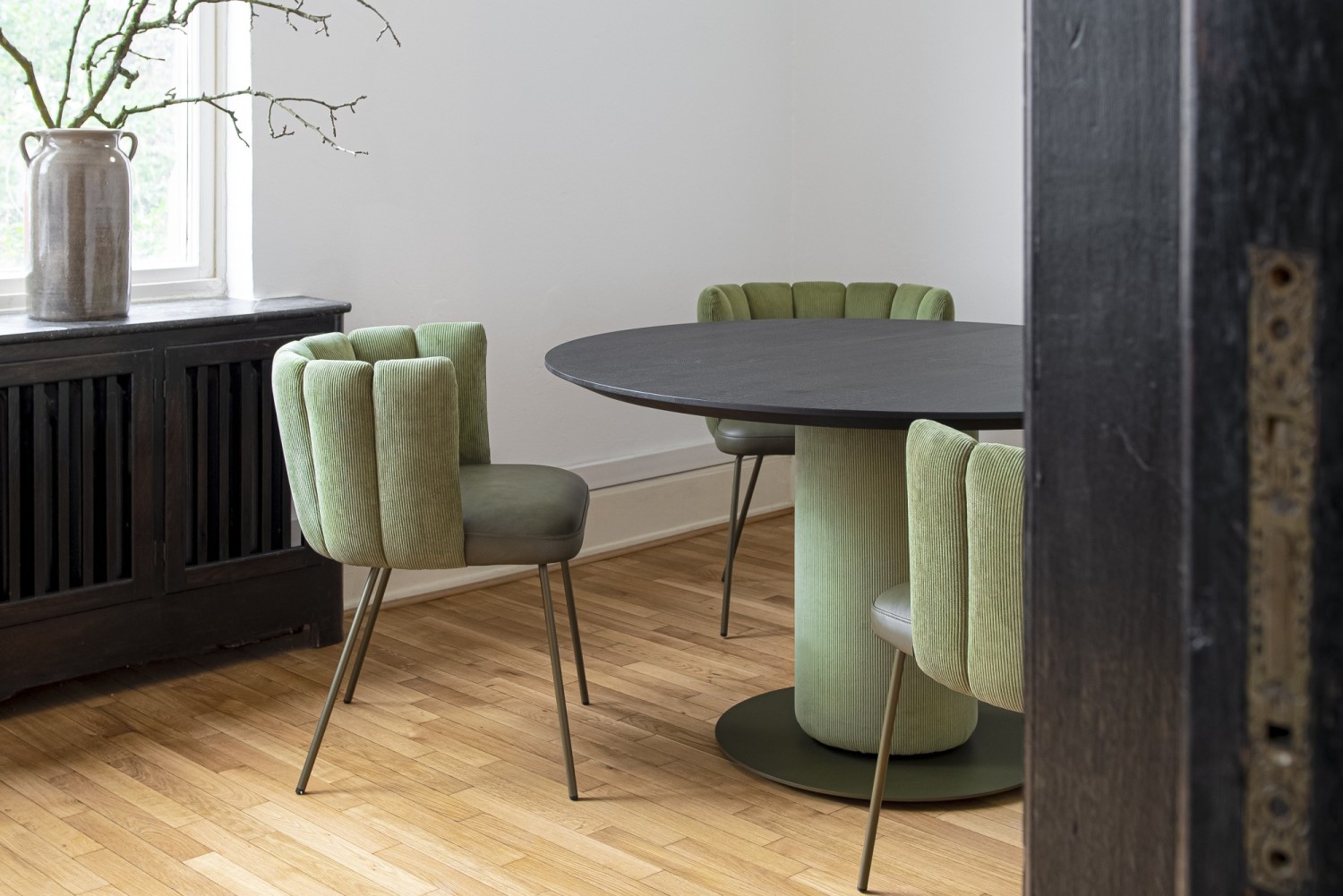 Das erste GAIA Modell der italienischen Designerin Monica Armani erinnert an eine Blüte und wurde 2018 mit dem German Design Award ausgezeichnet. Die raffinierte Polsterung der großzügigen Sitzfläche und die fünf oder sieben separat gepolsterten flexiblen Rückenelemente ergeben den unverkennbaren Komfort des GAIA Stuhls. Feminines Design in wunderschönen Stoffen und hochwertigen Ledern. Eine spannende Wirkung erzielt ein Materialmix für Rücken und Sitzfläche. Der GAIA Stuhl– ein exquisites Möbel für Zuhause oder das ausdrucksstarke Objekt.