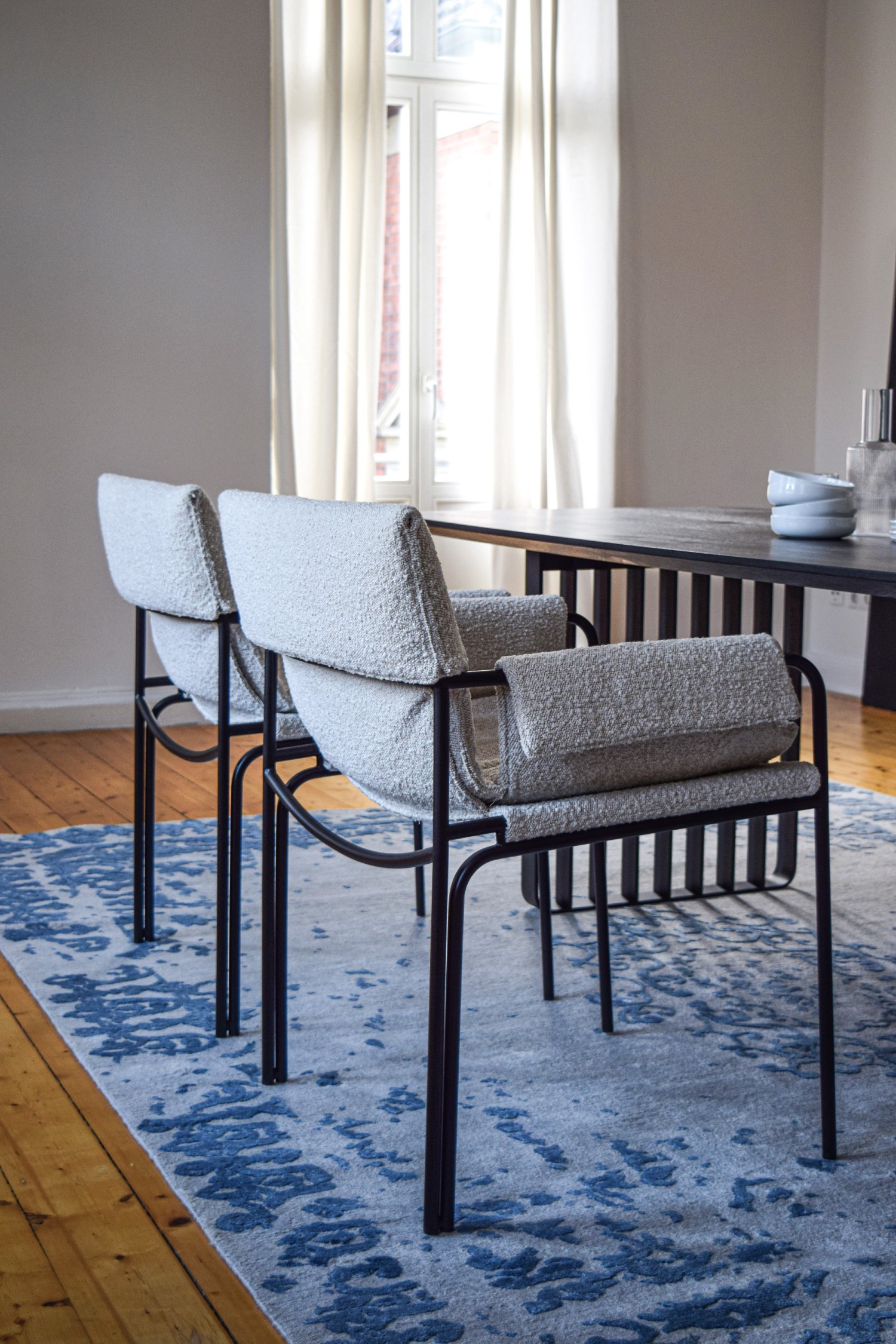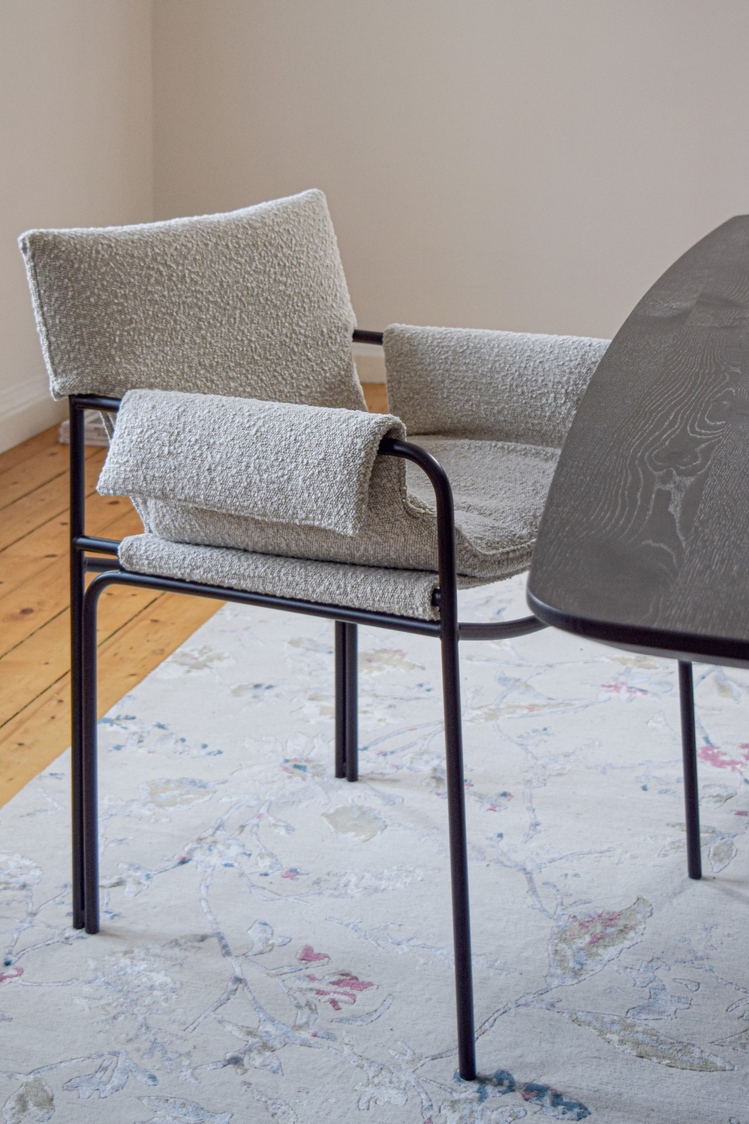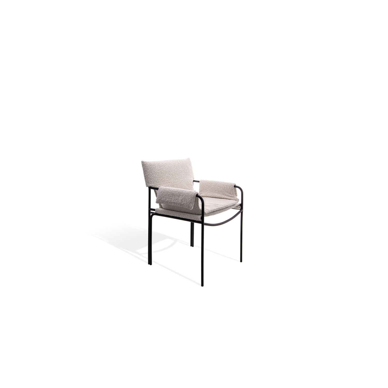 Der minimalistische Stuhl des Newcomers Daniel Stegen hat die Anmutung eines Regiestuhls und ist in klaren Linien gezeichnet. Seine offene, zeitlose Formensprache kennzeichnet dieses Sitzmöbel ebenso wie die hervorragende Material- und Verarbeitungsqualität. Die doppelt gelegte Stoff- oder Lederbespannung im Rücken und Sitzbereich bietet höchsten Komfort. Um dem Wunsch nach noch mehr Behaglichkeit und Wärme nachzukommen, kann optional eine weiche Polsterhusse über den Rücken und die Armlehnen gelegt werden. LOOP, minimalistisch und dezent.