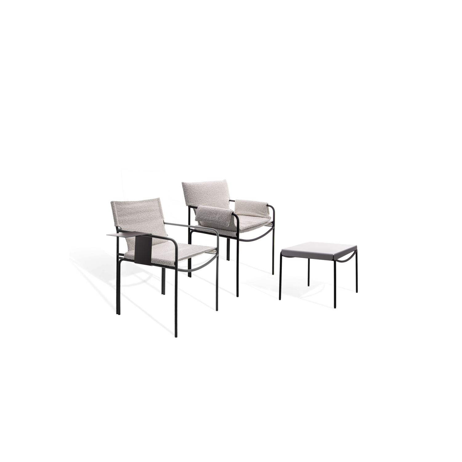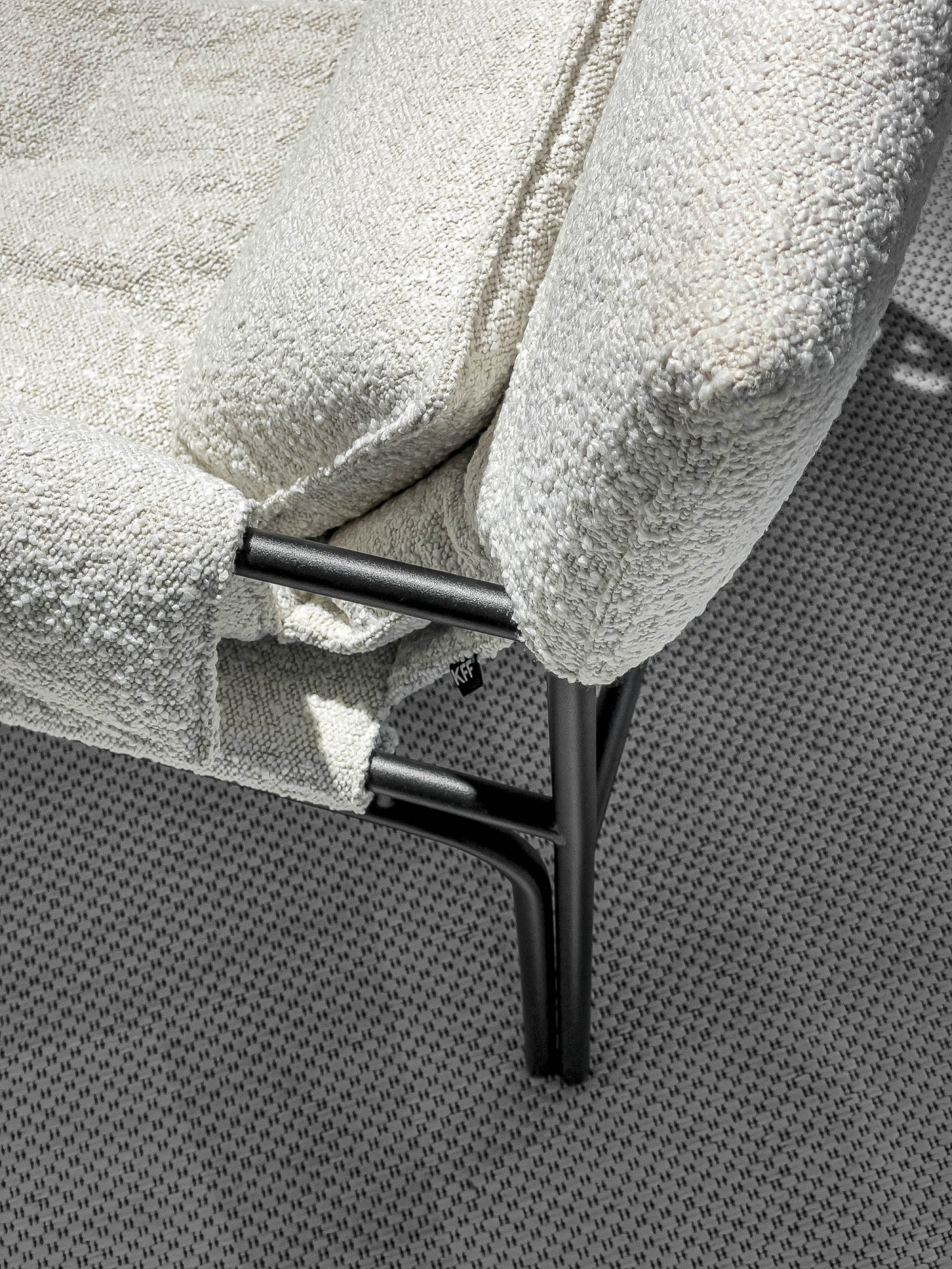 Die minimalistische LOOP Familie des Newcomers Daniel Stegen hat die Anmutung eines Regiestuhls und ist in klaren Linien gezeichnet. Eine offene, zeitlose Formensprache kennzeichnet die Sitzmöbel ebenso wie die hervorragende Material- und Verarbeitungsqualität. Die doppelt gelegte Stoff- oder Lederbespannung im Rücken und Sitzbereich bietet höchsten Komfort. Um dem Wunsch nach noch mehr Behaglichkeit und Wärme nachzukommen kann ein kleines Zusatzkissen gewählt oder optional eine weiche Polsterhusse über den Rücken und die Armlehnen gelegt werden. Das Stuhlmodell und der Sessel mit seiner wandelbaren Ottomane ergeben als Familie ein gediegenes Ensemble. Die minimalistische Design-Sitzmöbel platzieren sich im Outdoor-Bereich als POOL Familie.