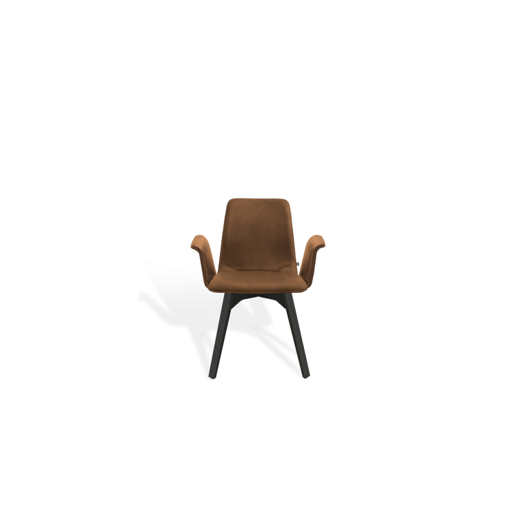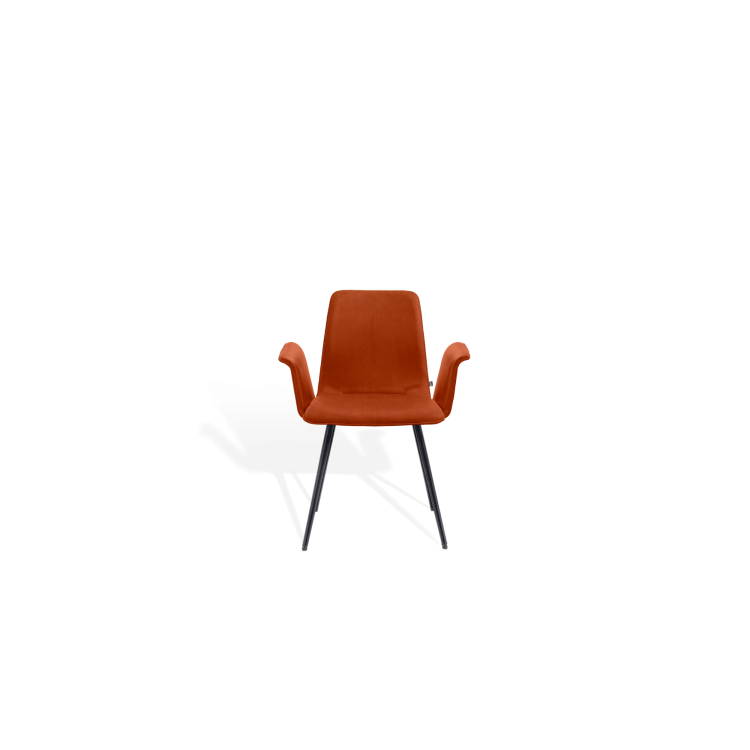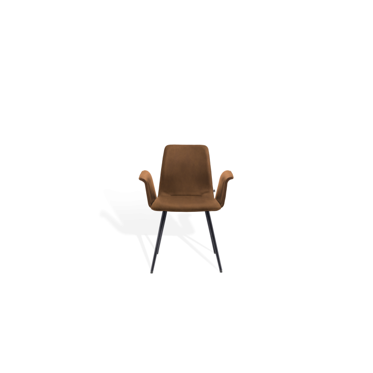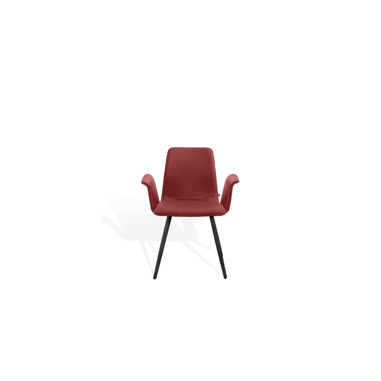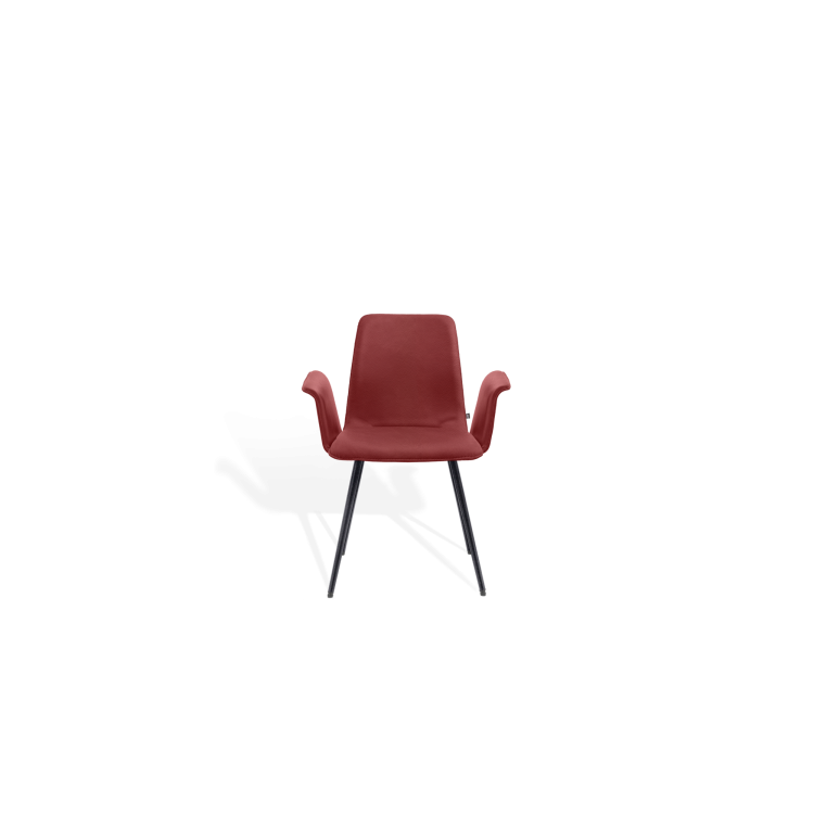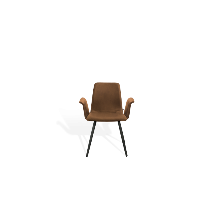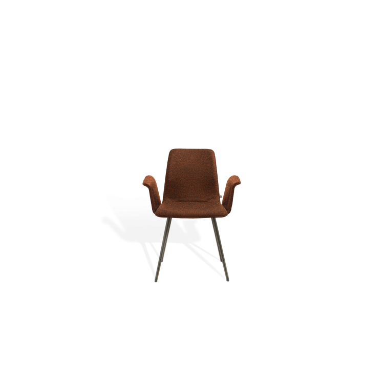 Der Stuhl MAVERICK aus dem Designbüro Hoffmann Kaleyss spricht eine moderne Formensprache, erinnert jedoch an Stuhlmodelle aus vergangenen Epochen. Die charakteristischen, leicht ausgestellten Beine tragen die aus einem Stück ergonomisch geformte, fest gepolsterte Sitzschale. Besonders einladend zeigt sich die Komposition mit der schwungvoll verbundenen Armlehne. Komfortabel, gestalterisch zeitlos und langlebig ist der MAVERICK prädestiniert für den legeren privaten Wohnraum oder die ungezwungene anspruchsvolle Gastronomie.