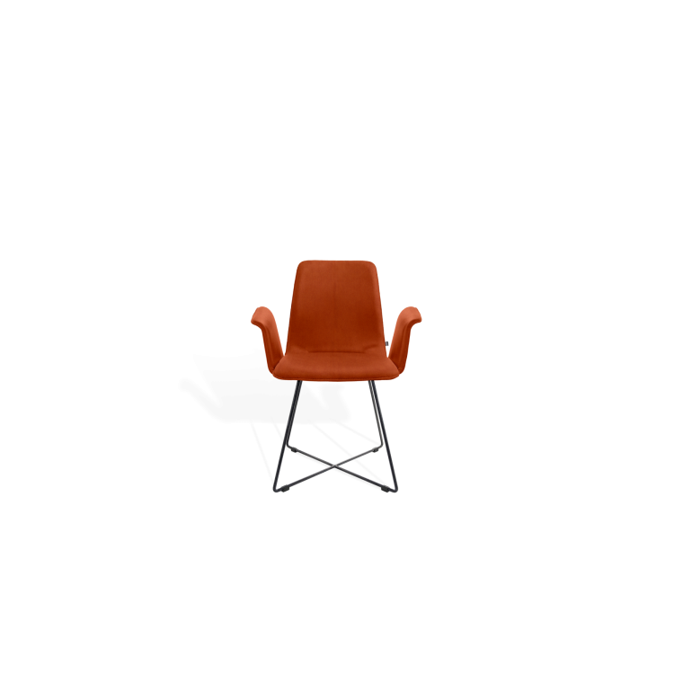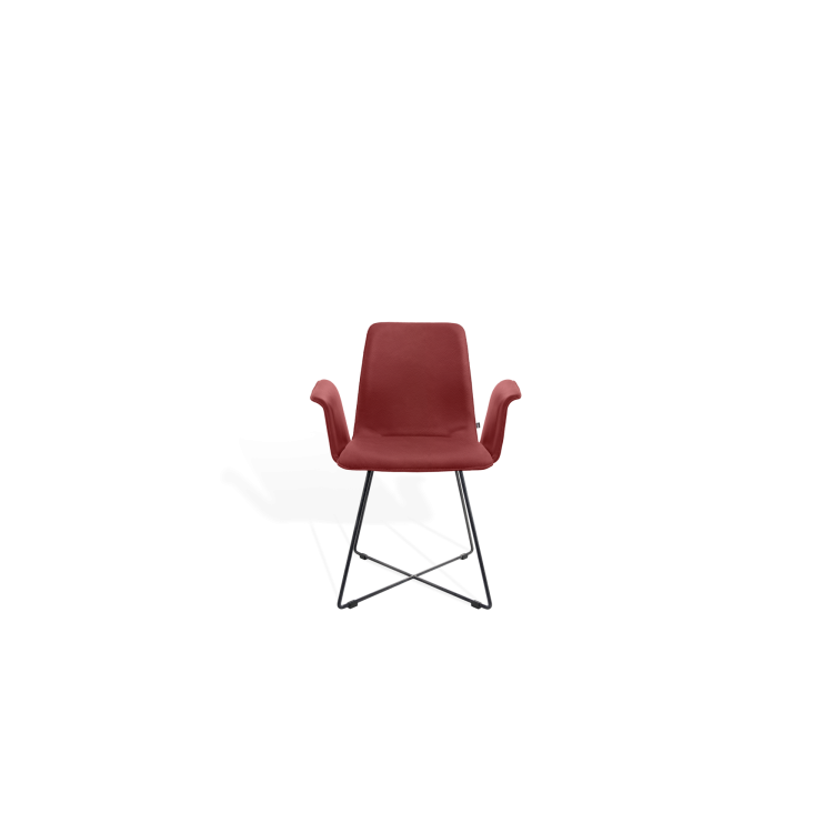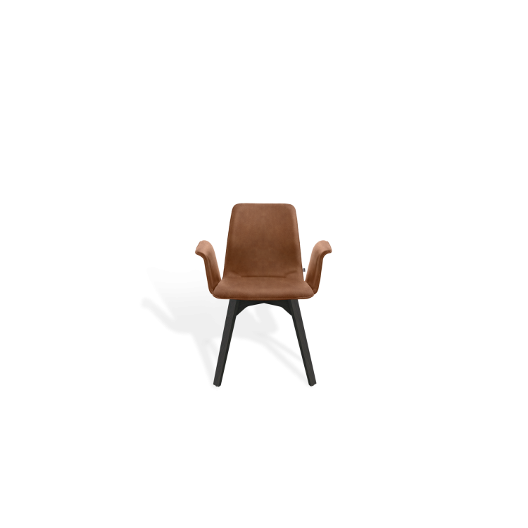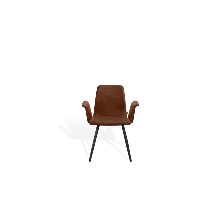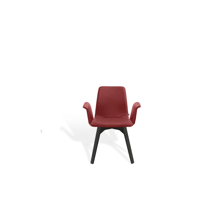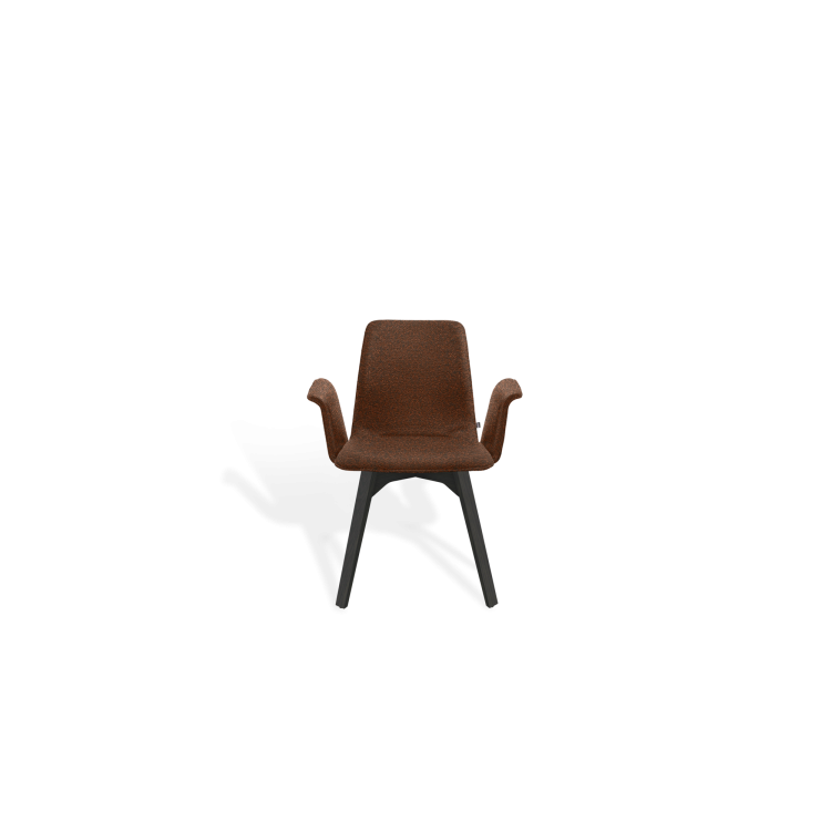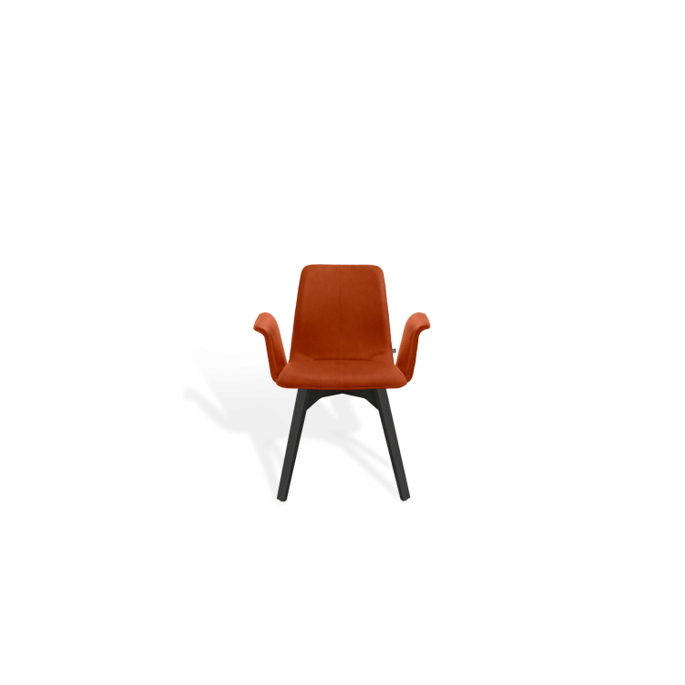 Der Stuhl MAVERICK aus dem Designbüro Hoffmann Kaleyss spricht eine moderne Formensprache, erinnert jedoch an Stuhlmodelle aus vergangenen Epochen. Die charakteristischen, leicht ausgestellten Beine tragen die aus einem Stück ergonomisch geformte, fest gepolsterte Sitzschale. Besonders einladend zeigt sich die Komposition mit der schwungvoll verbundenen Armlehne. Komfortabel, gestalterisch zeitlos und langlebig ist der MAVERICK prädestiniert für den legeren privaten Wohnraum oder die ungezwungene anspruchsvolle Gastronomie.