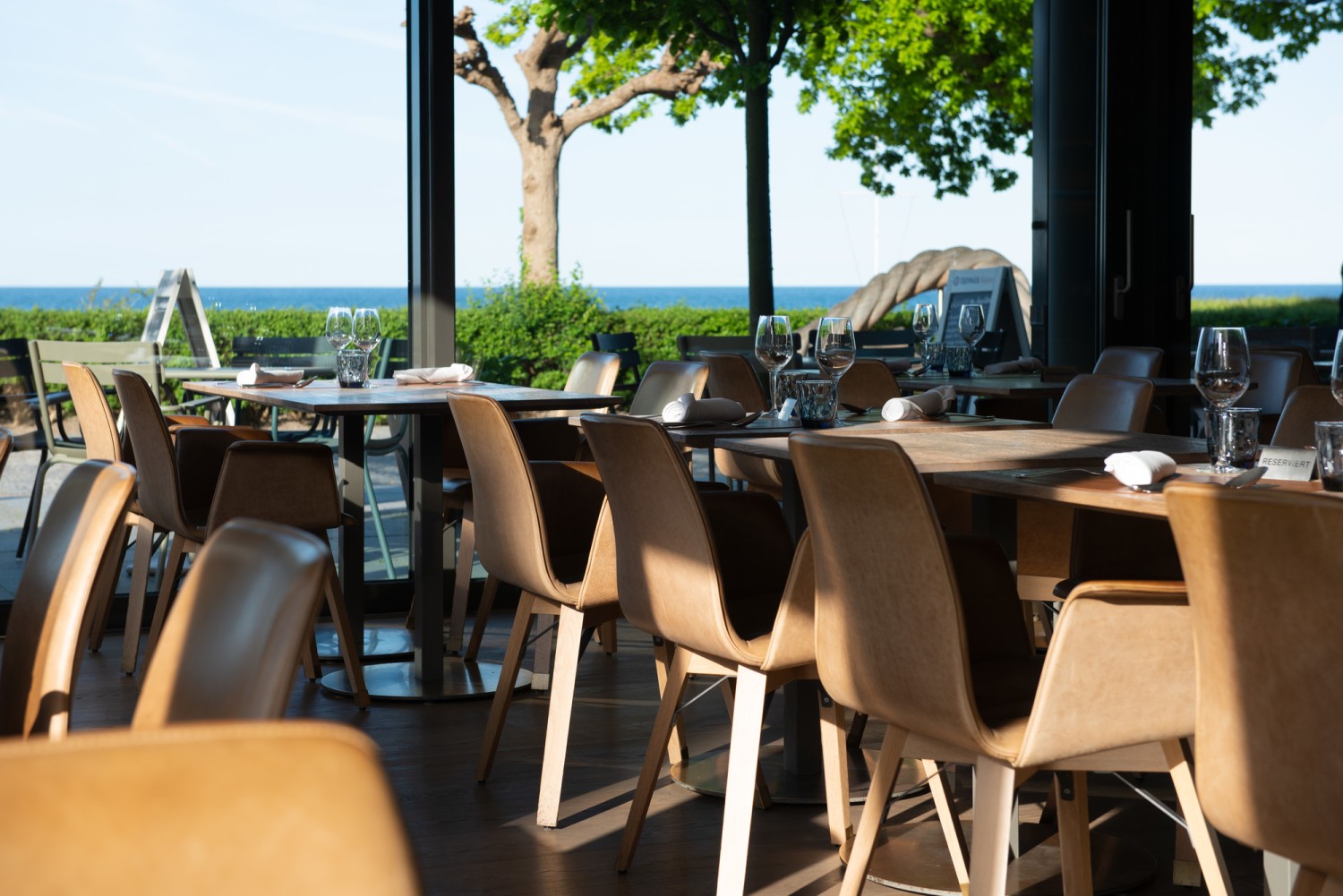 Das Hotel am Meer an der Binzer Strandpromenade greift die Ästhetik des weißen Sandstrandes auf und kontrastiert ihn gekonnt mit der geradlinigen Formgebung des MAVERICK Stuhls.