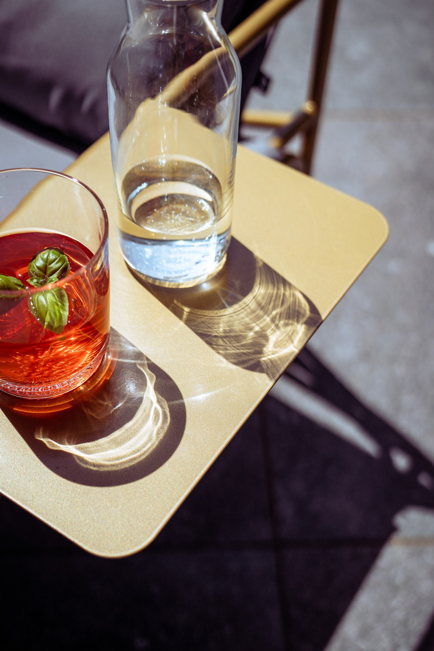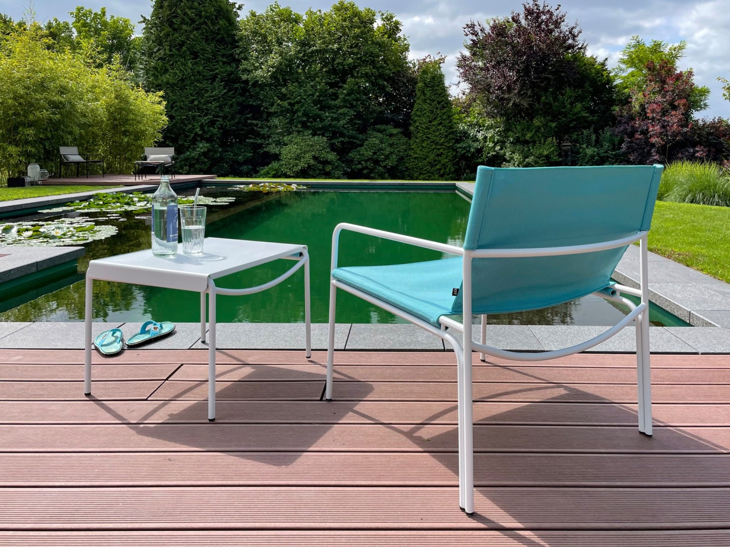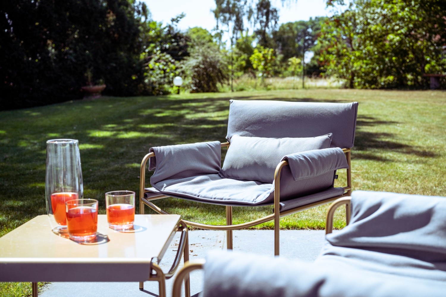 Das variable kleine Tablett aus pulverbeschichteten rostfreiem Stahl wird im Armlehnbereich eingehängt, kann die Seite wechseln, drinks & more parat stellen oder zum Beispiel beim Telefonieren als zusätzliche bequeme Armstütze dienen. Einfach erfrischend cool.