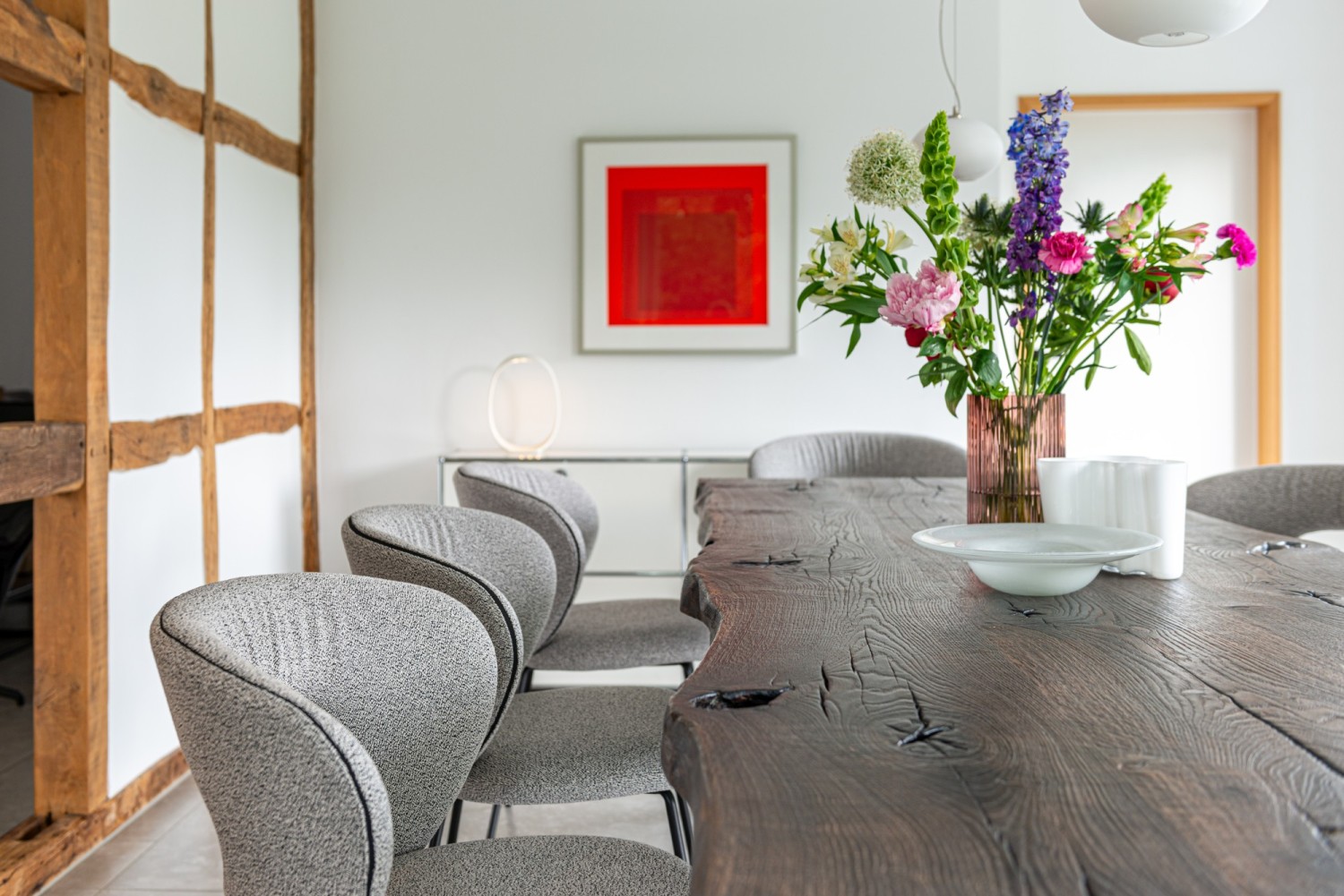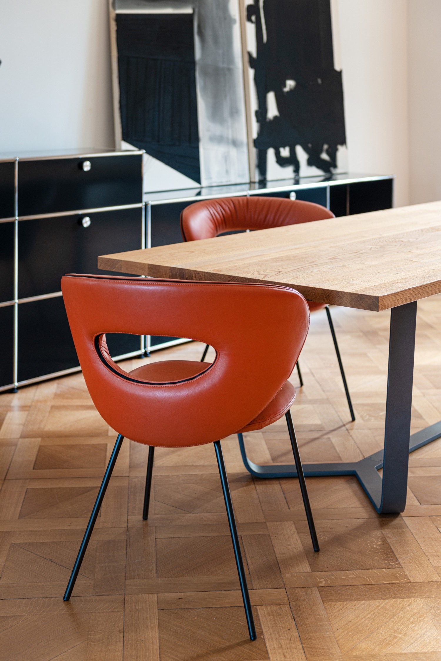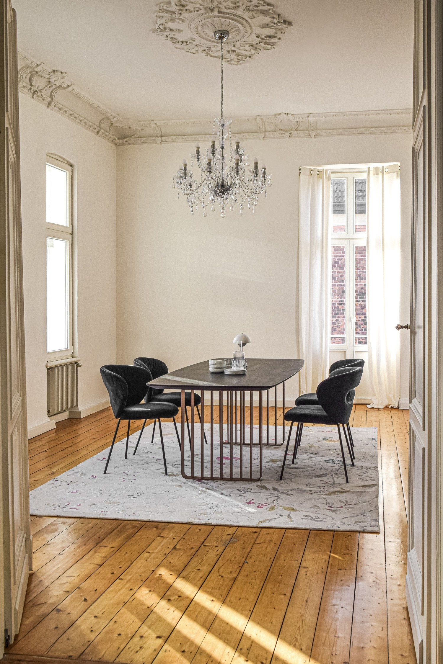 The pronounced, form-giving curves of the elliptical backrest and the characterful see-through are characteristic of the new design by Monica Armani. An elegant chair facing us with the best comfort thanks to the dynamic, embracing back in two size versions and an excellently upholstered seat. The contrasting band emphasises the design lines. Thanks to the oval opening in the backrest, incorporated with attention to detail, the furniture offers beautiful views from every perspective. On top of that, the chair is very light and easy to move. ALICE, a gem with comfort.