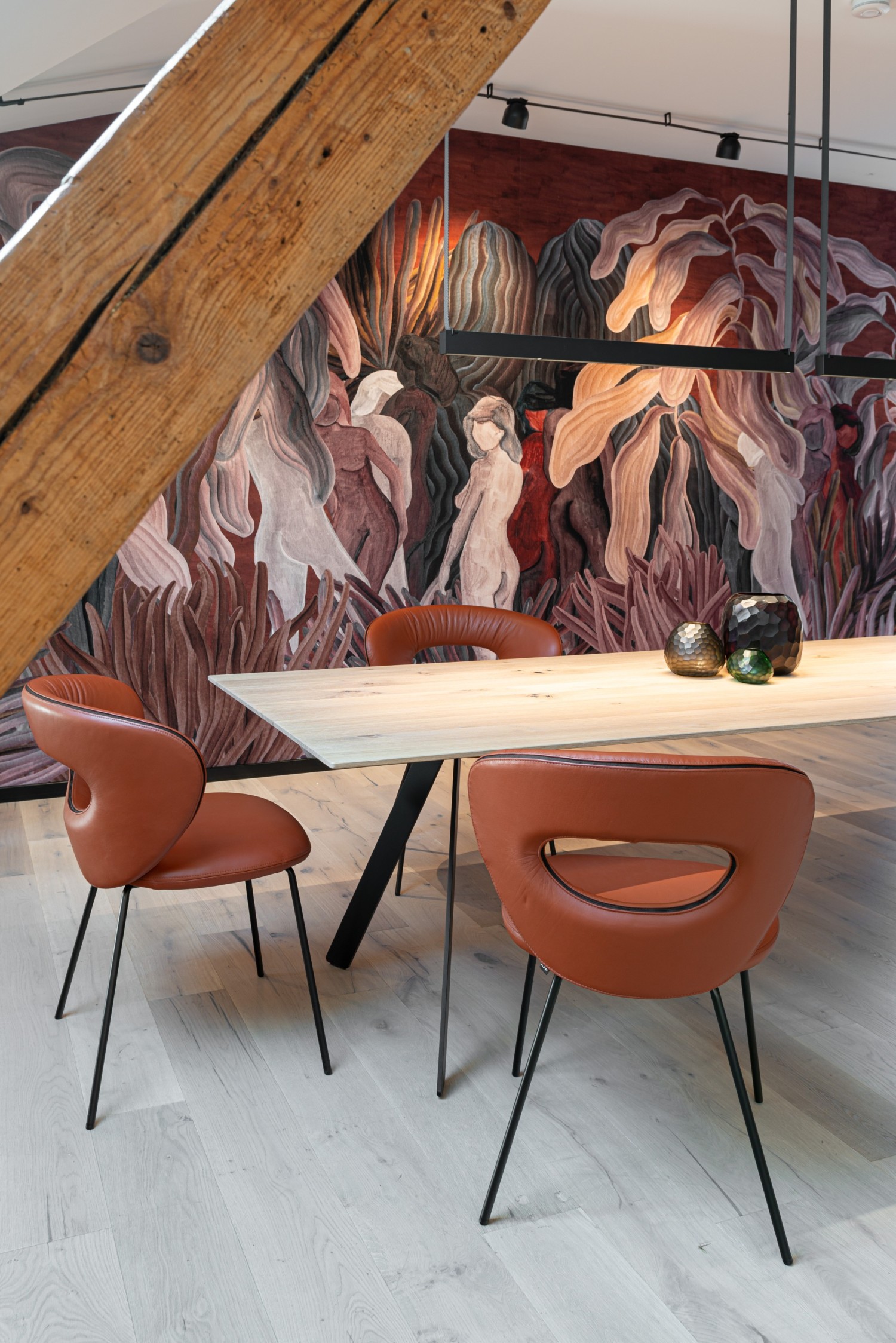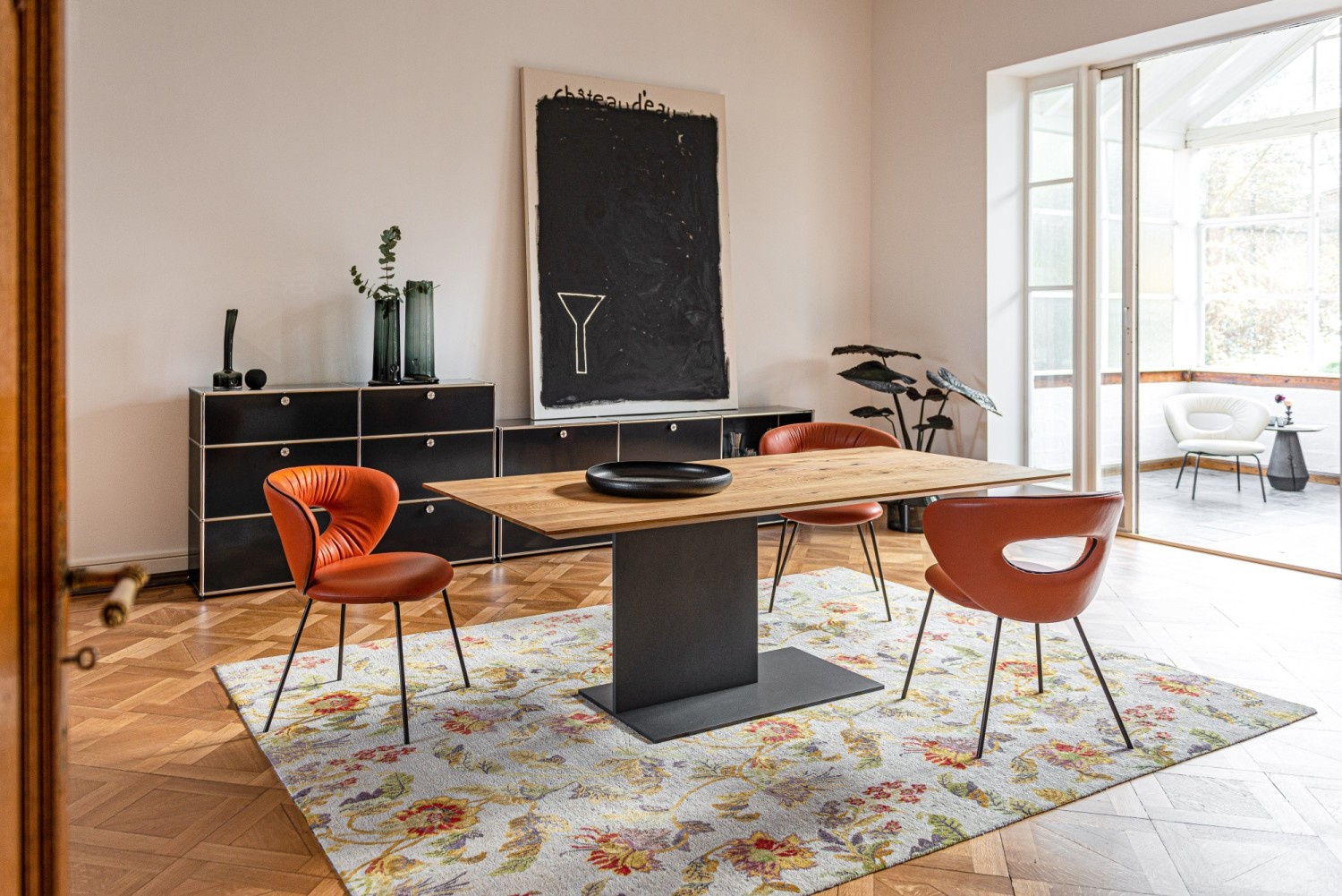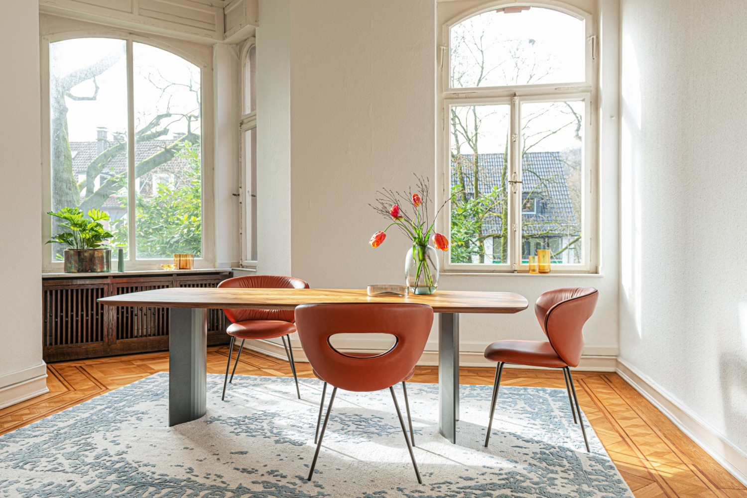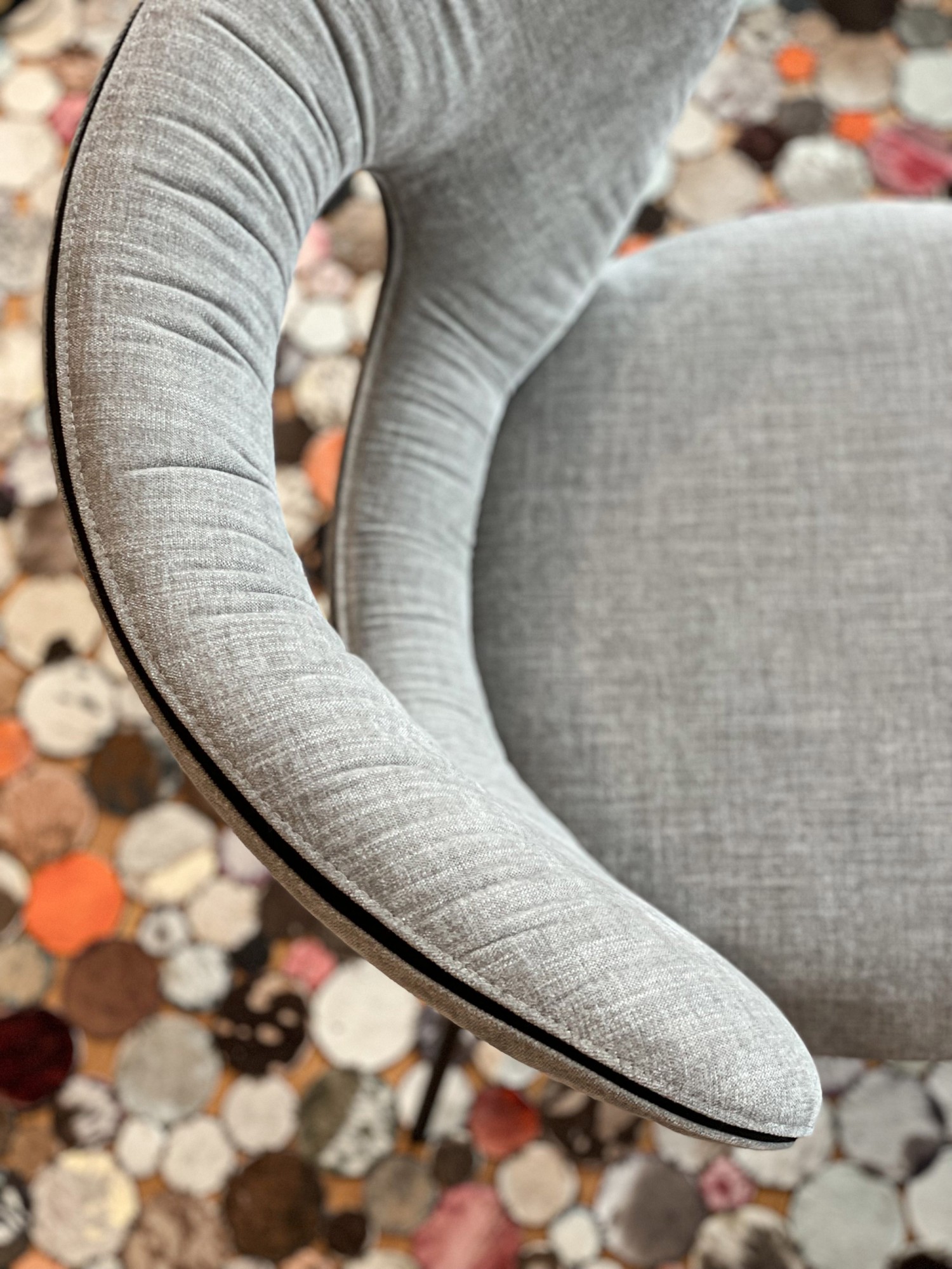 The pronounced, form-giving curves of the elliptical backrest and the characterful see-through are characteristic of the new design by Monica Armani. An elegant chair facing us with the best comfort thanks to the dynamic, embracing back in two size versions and an excellently upholstered seat. The contrasting band emphasises the design lines. Thanks to the oval opening in the backrest, incorporated with attention to detail, the furniture offers beautiful views from every perspective. On top of that, the chair is very light and easy to move. ALICE, a gem with comfort.