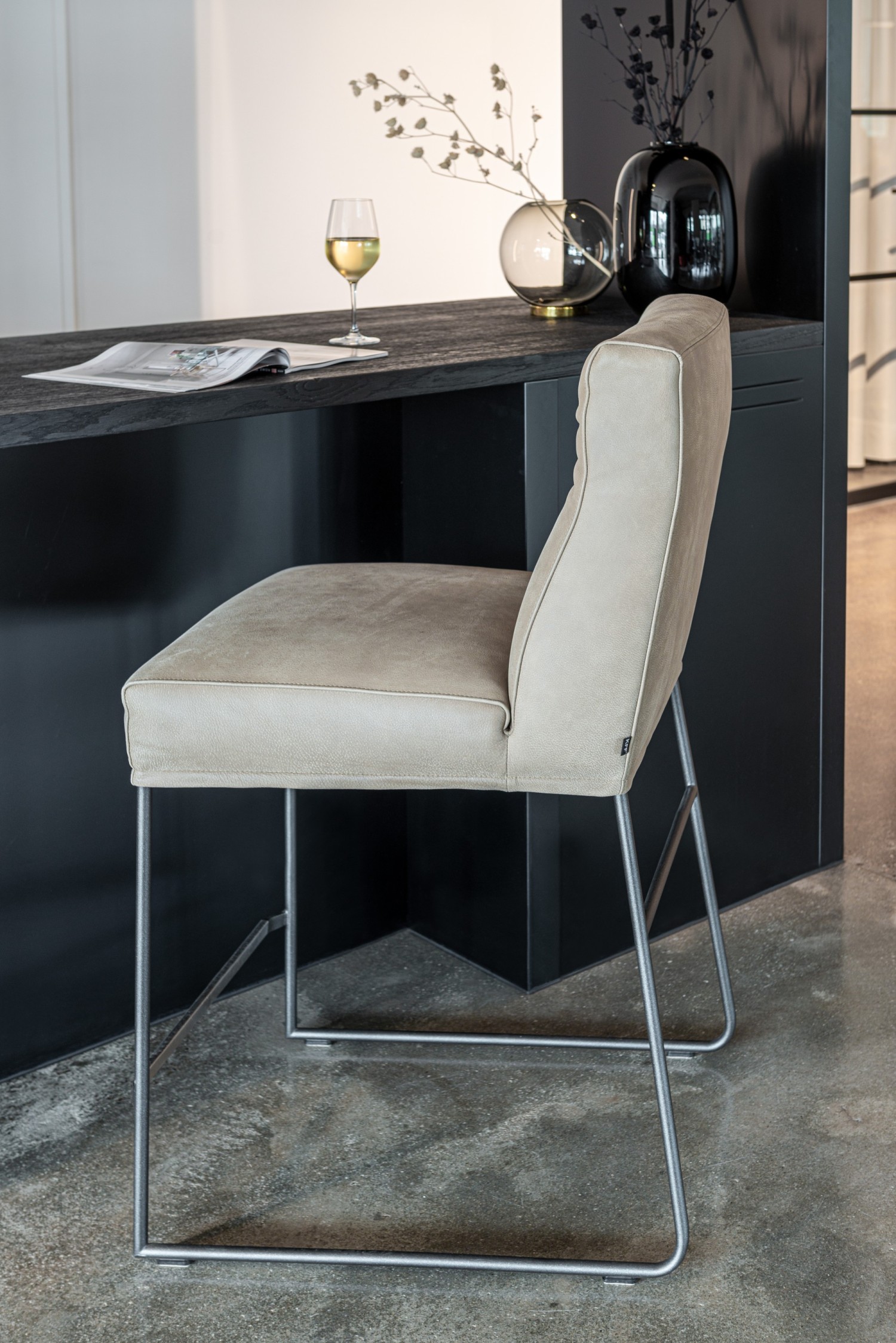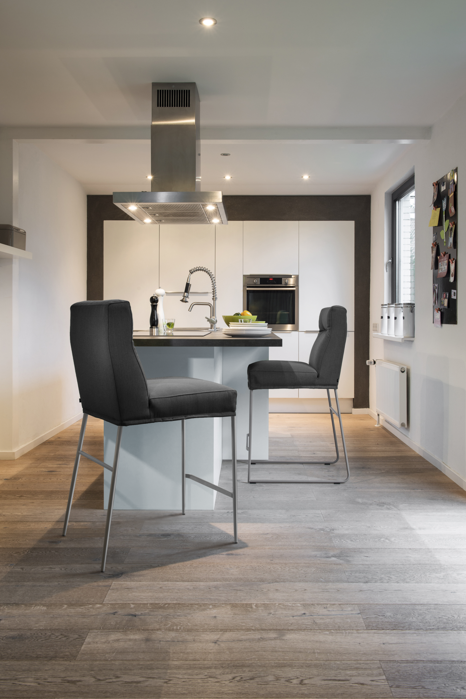 With the D-LIGHT, Dutch designer Steven Schilte has clearly achieved his goal of projecting the cosiness of an armchair into a counter chair. The deliberately reduced lines combined with the opulent upholstery create an invitingly comfortable counter chair. The upholstered armrests adapt to the shape of the chair. Without armrests, the D-LIGHT radiates openness and generosity. The clear architecture of the seating furniture avoids any visual heaviness and the comfort offers everything a counter chair needs. The D-LIGHT - a favourite place at the private kitchen counter or exclusive gastronomy.