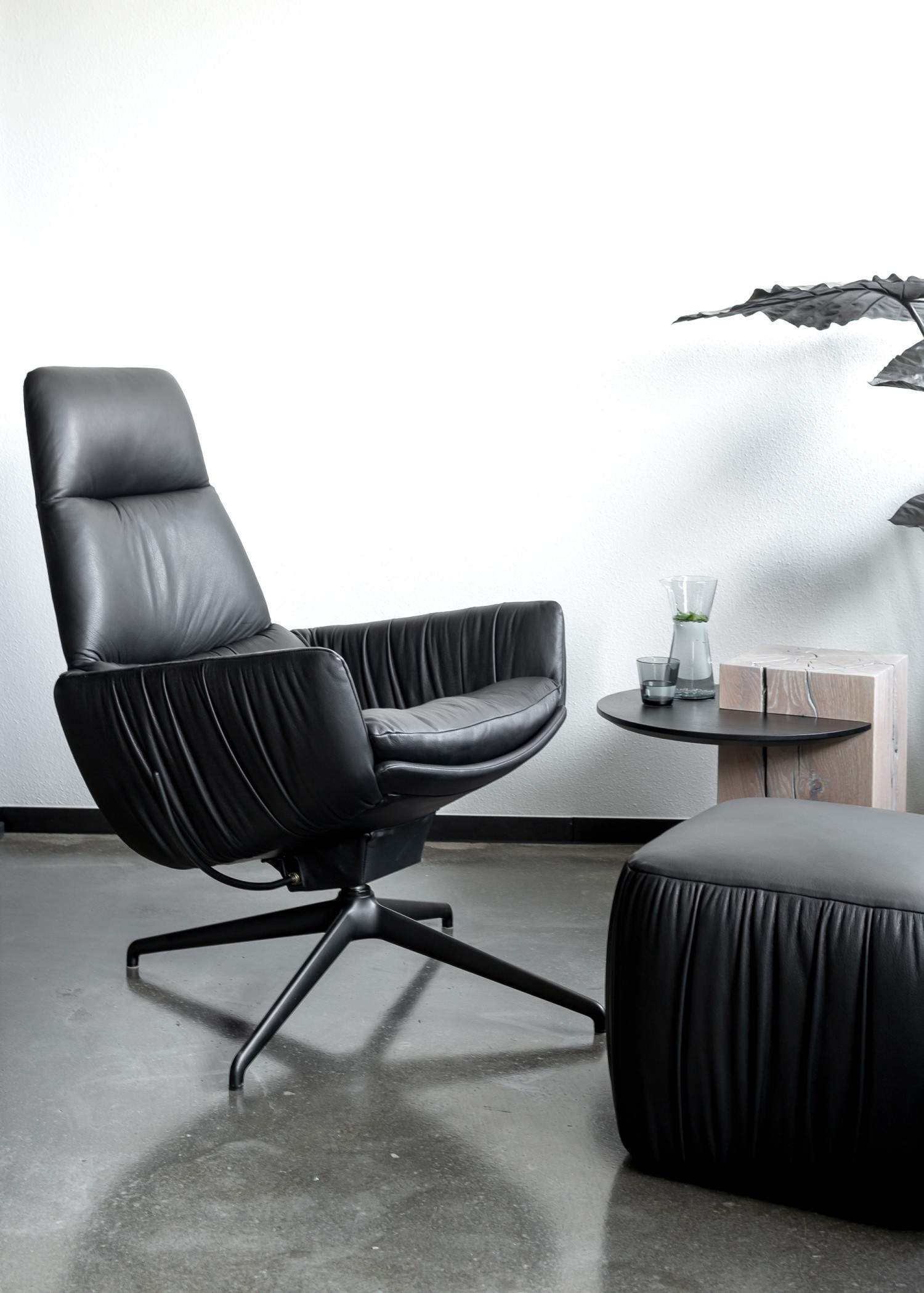 The FAYE CASUAL LOUNGE armchair is particularly popular with company. The FAYE CASUAL pouf matches the armchair's pleated upholstery. But the combination with an ottoman on a matching frame is just as comfortable as it is stylish.