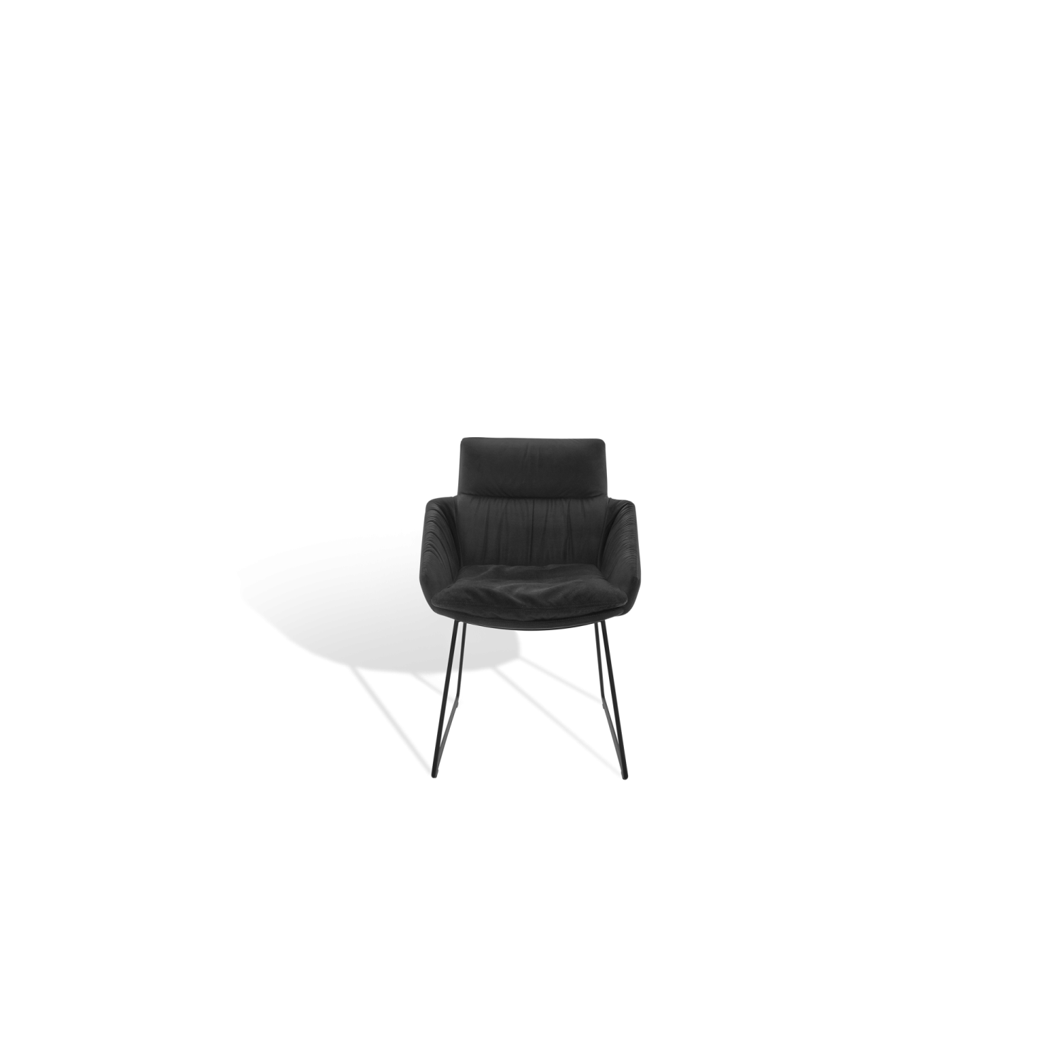 For the FAYE CASUAL upholstered chair, the KFF design team merges straight lines, fine curves and expressive folds into a feminine symbiosis. The folds enclose the chair like a curtain. The upper firmly wrapped backrest presents an elegant contrast. With its finely crafted upholstery, the lightweight chair offers the best comfort for the back, arm and shoulder area. A tailor-made chair for the private rooms or the elegant object.