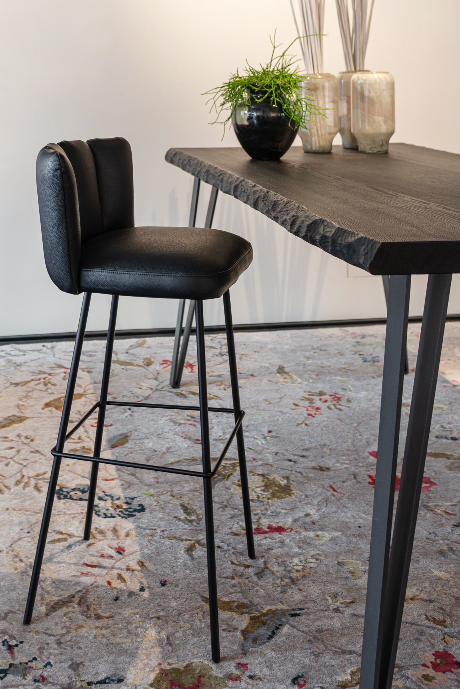 The first GAIA model by Italian designer Monica Armani reminds one of a flower and was awarded the German Design Award in 2018. The refined upholstery of the generous seat and the five separately upholstered flexible, half-height back elements create the unmistakable comfort of the GAIA barstool. Feminine design in beautiful fabrics and high-quality leathers. An exciting effect is achieved by a mix of materials for back and seat. The GAIA bar stool - an exquisite piece of furniture for the expressive object.