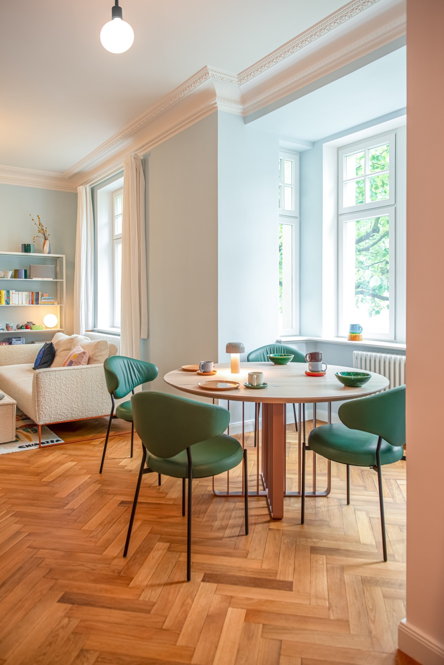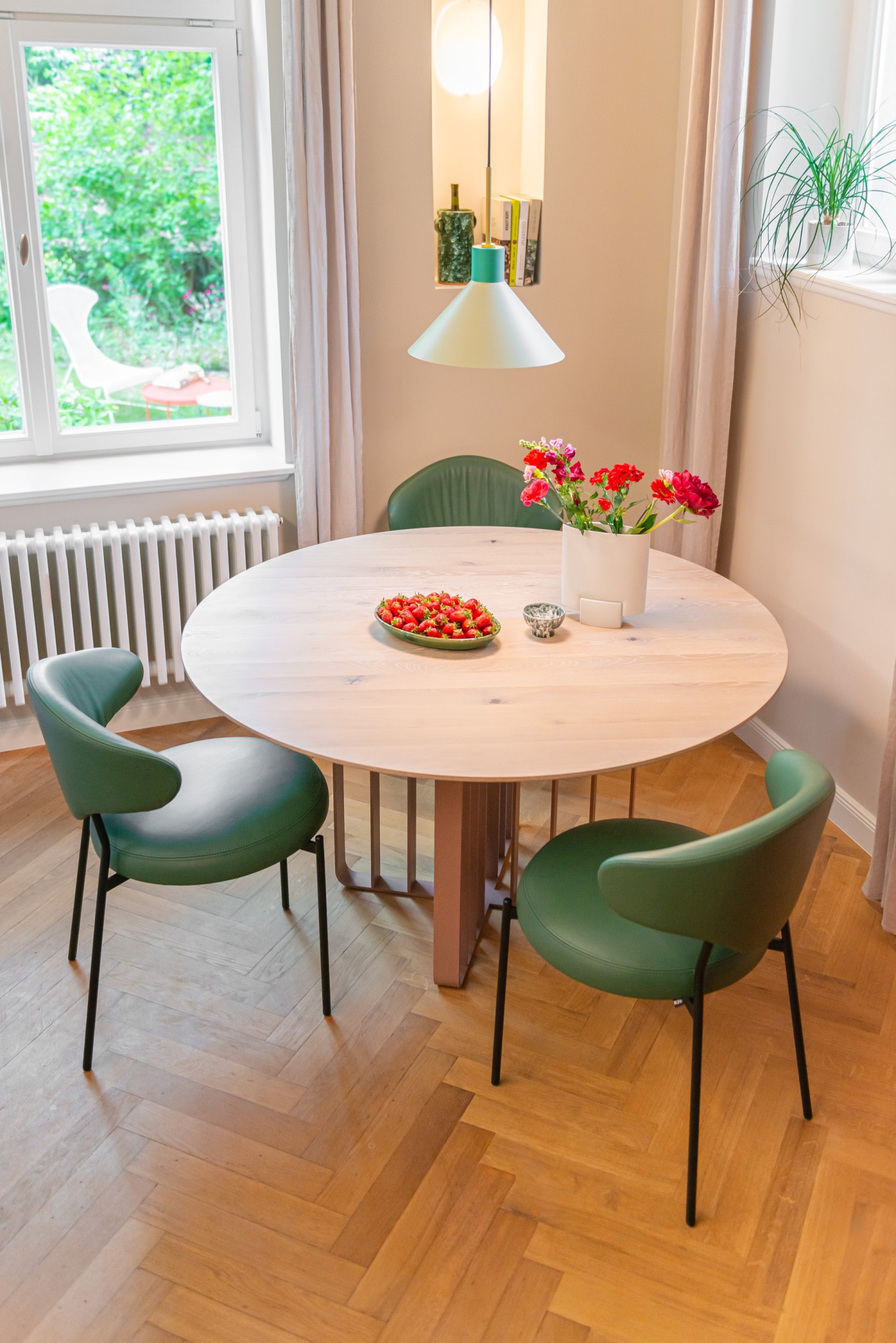 The new design by Daniel Stegen features a minimalist design with great attention to detail. It is based on the clear geometric basic shape of the circle in the round seat. The backrest takes up the opening radius identically. The legs feature finely crafted lenticular heads at the front and merge into the backrest at the rear. The shape of the backrest draws the eye. It looks as if it flows directly into the seat, but there is a deliberately filigree gap between the seat and backrest. As soon as you take a seat, you are pleasantly surprised because, as is typical of KFF's DNA, the comfort is optimal, but surprisingly soft and almost perfect at this point. The seat is lavishly upholstered with a three-layer foam to make it comfortable to sit on. The beautifully shaped backrest supports the back and offers immediate relaxation. The chair delivers plenty of visual coolness, creative attention to detail and shows a high degree of authenticity. Icon, a real statement piece.
