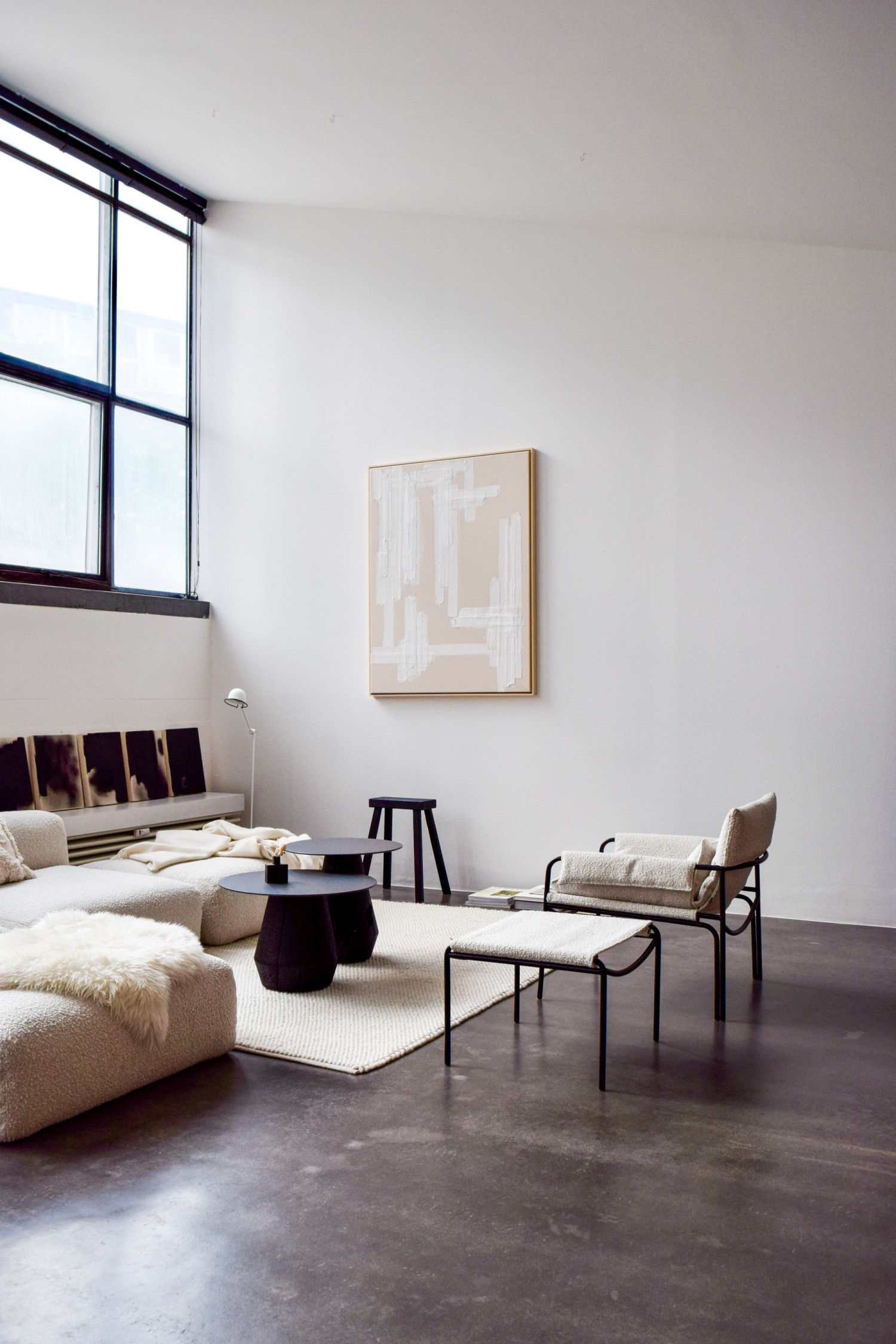 The minimalist lounge chair by newcomer Daniel Stegen has the look of a director's chair and is drawn in clear lines. Its open, timeless design language characterises this armchair, as does the excellent quality of the materials and workmanship. The double-layered fabric or leather upholstery in the back and seat area and the cosy cushion offer maximum comfort. To satisfy the desire for even more cosiness and warmth, a soft upholstered cover can optionally be placed over the back and armrests. LOOP LOUNGE, minimalist yet cosy, straightforward yet discreet. With its ottoman, the armchair makes a dignified ensemble.