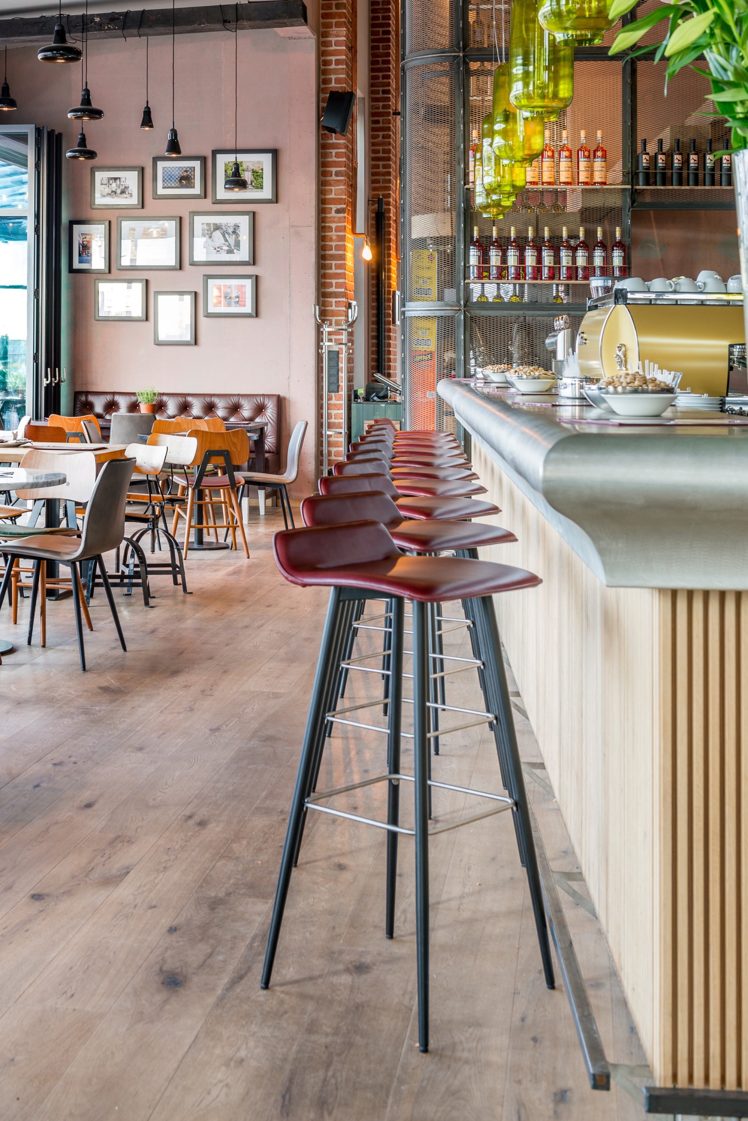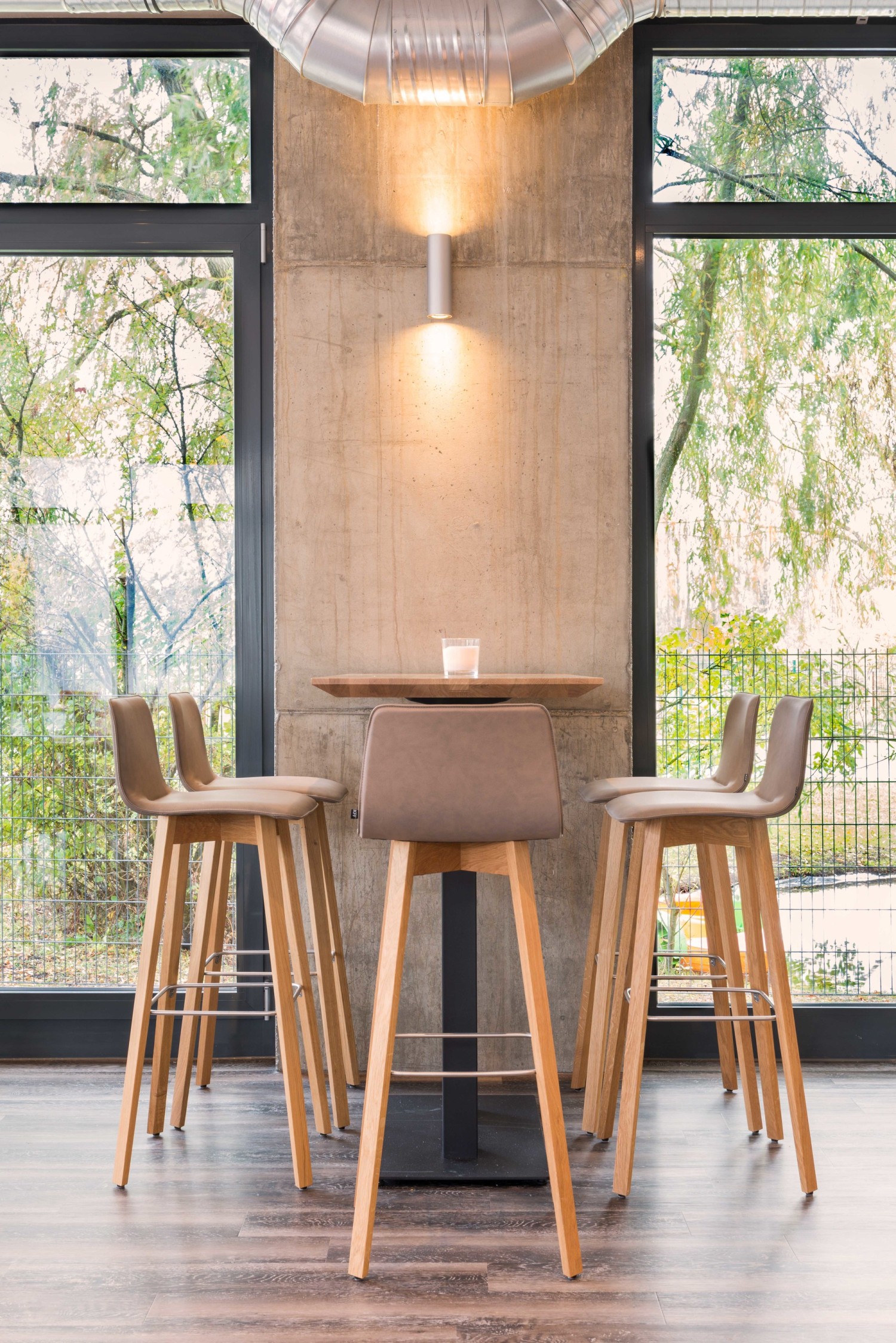 The MAVERICK bar stool from the Hoffmann Kaleyss design studio speaks a modern language of form. The characteristic, slightly flared legs carry the chair shell, which is ergonomically formed from one piece with a low back. Comfortable, timeless in design and durable, the MAVERICK bar stool is predestined for natural, casual and sophisticated gastronomy.