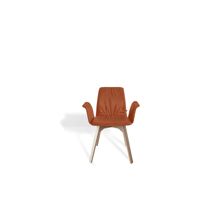The MAVERICK CASUAL chair from the Hoffmann Kaleyss design studio speaks a modern language of form, but is reminiscent of chair models from past eras. The characteristic, slightly flared legs support the seat shell, which is ergonomically formed from one piece. The composition is particularly inviting with the sweepingly connected armrest. The attractive drape of the upholstery emphasises the casual chic of the CASUAL version. Comfortable, timeless in design and durable, the MAVERICK CASUAL is predestined for the natural private living space or the casual sophisticated gastronomy.