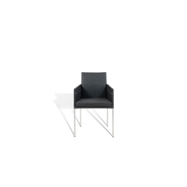 The linear form and the harmony of elegance, modernity and timelessness describe the design of this distinctive chair. The slightly inclined backrest and a foam-covered seat are covered with a cover of high-quality upholstery fabric or robust leather. The flat foam cushion provides additional comfort. The TEXAS FLAT composition with elegant armrest is as graceful and cosy as a slim armchair. The TEXAS FLAT, a personal companion for the dining table at home or a classic seating furniture for upscale gastronomy.